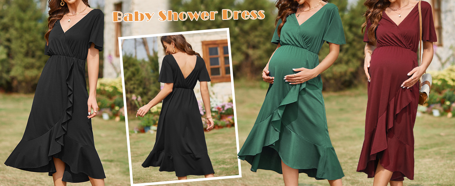 [المميزات] تتميز ملابس الحمل LAISHEN بأكمام قصيرة، ورقبة على شكل حرف V مثيرة من الأمام والخلف، وحاشية مكشكشة عالية ومنخفضة، وزر ياقة مخفي، وطول مناسب لساق الساق، ونمط فضفاض، إنه فستان رسمي أنيق لالتقاط الصور للأمومة