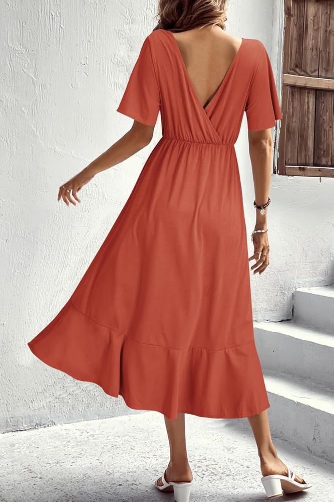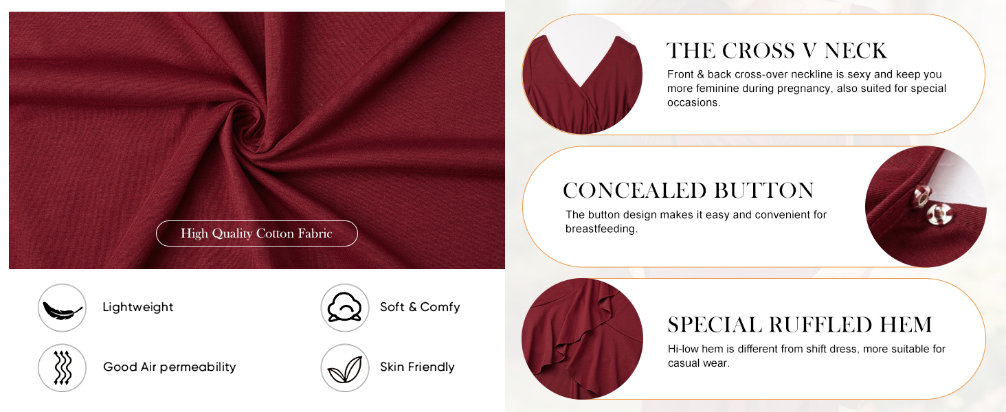 [تصميم مدروس] فساتين الحمل للنساء ذات تصميم رقبة متقاطعة على شكل حرف V مناسبة بسهولة للرضاعة الطبيعية بعد الولادة. الزر المخفي هو التصميم الخاص لفستان الرضاعة هذا. لا تقلق بشأن تعريض نفسك عند ارتدائه. يعد هذا الفستان النسائي الكاجوال خيارًا رائعًا لفترة الأمومة