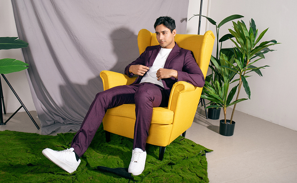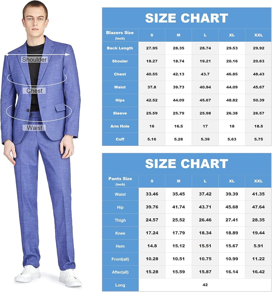 تصميم أنيق وعصري: تتميز مجموعة البدلة الرجالية المكونة من قطعتين بتصميم نحيف يوفر مظهرًا عصريًا وأنيقًا. التصميم الانسيابي يكمل شكل جسمك وينضح بالثقة والرقي.