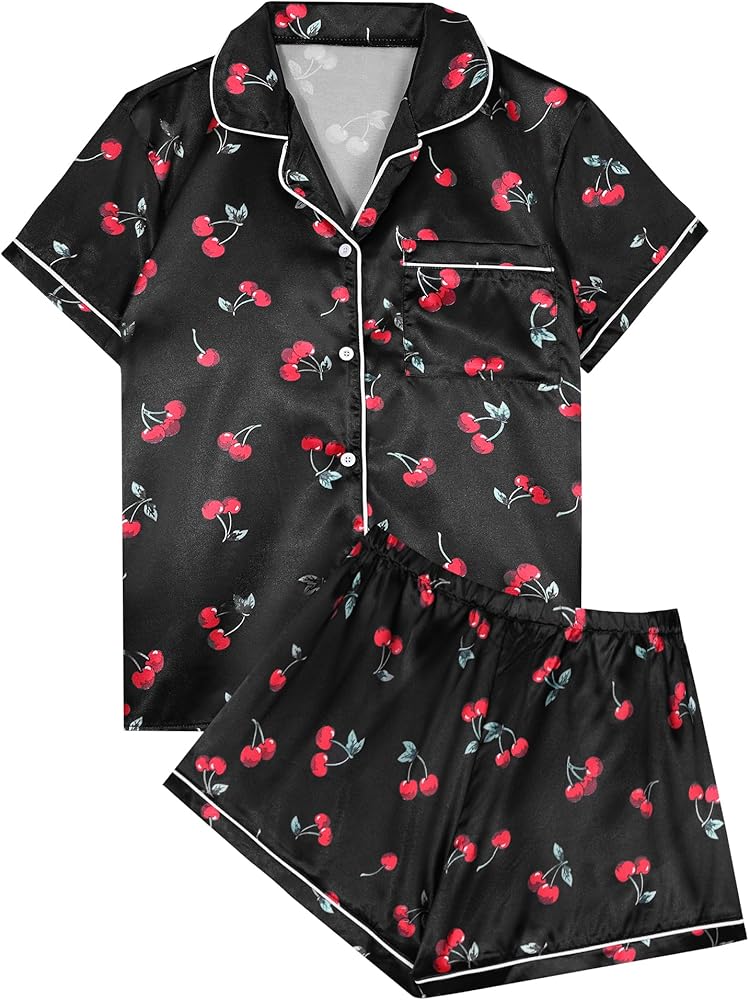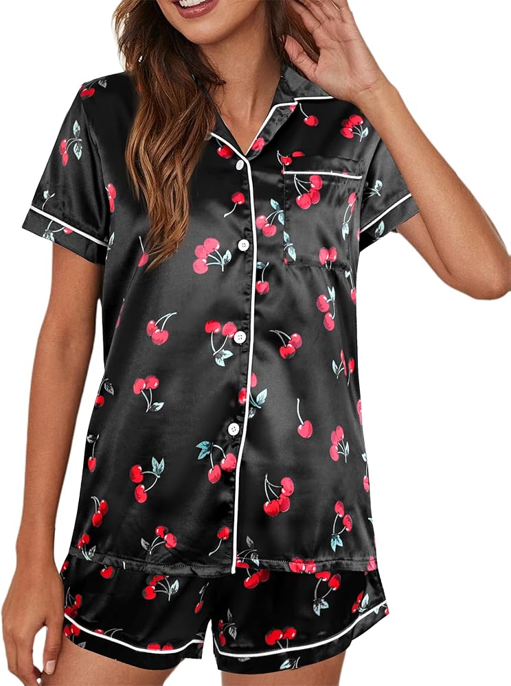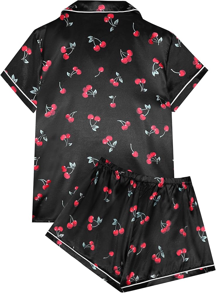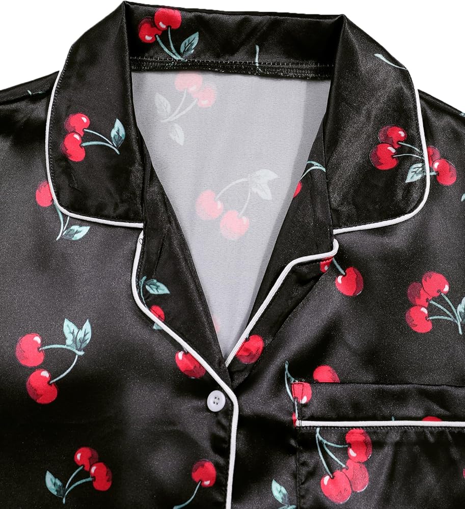 - المواد: بيجامة بأزرار لأعلى للسيدات مصنوعة من البوليستر، نسيج ساتان ناعم ومسامي، مريح جدًا في الارتداء