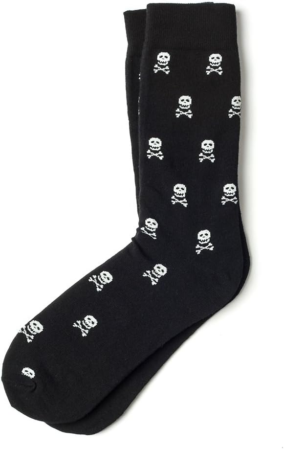 أضف لمسة من التمرد إلى ملابسك اليومية مع الجوارب القطنية المحشوة بالجمجمة والعظمتين المتقاطعتين. هذه الجوارب مزينة بجمجمة بيضاء وعظمتين متقاطعتين فوق خلفية رمادية مع لمسات كستنائية ومصنوعة من القطن عالي الجودة. مستورد.