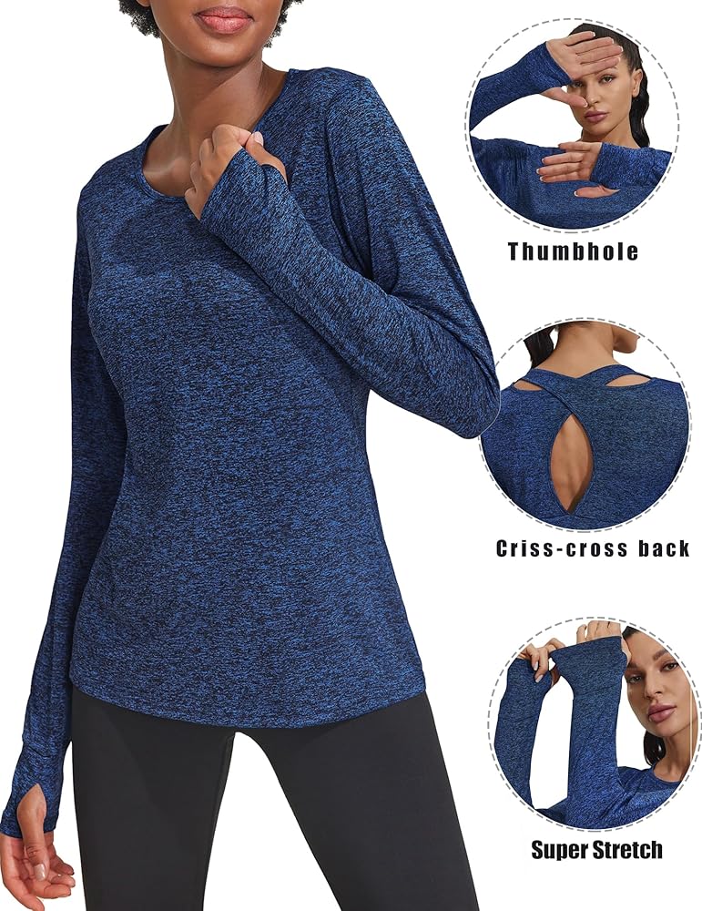 جودة عالية: يتميز هذا القميص ذو الأكمام الطويلة للتمرين بألوان جميلة لا تبهت والنسيج لا يتجعد أو ينكمش، كما أنه سهل الغسل.