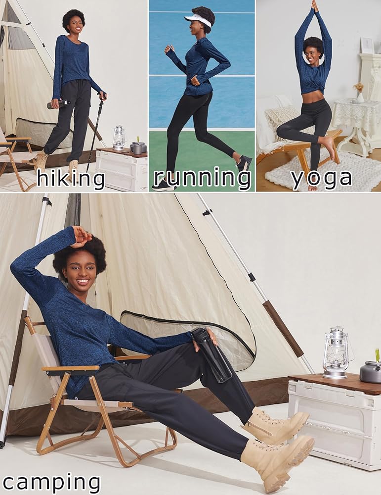 خامة سريعة الجفاف: قميص اليوجا طويل الأكمام هذا مصنوع من 90% بوليستر و10% ألياف لدنة، نسيج يمتص الرطوبة، سريع الجفاف وبارد، مثالي لممارسة الرياضة والجري والمشي لمسافات طويلة.