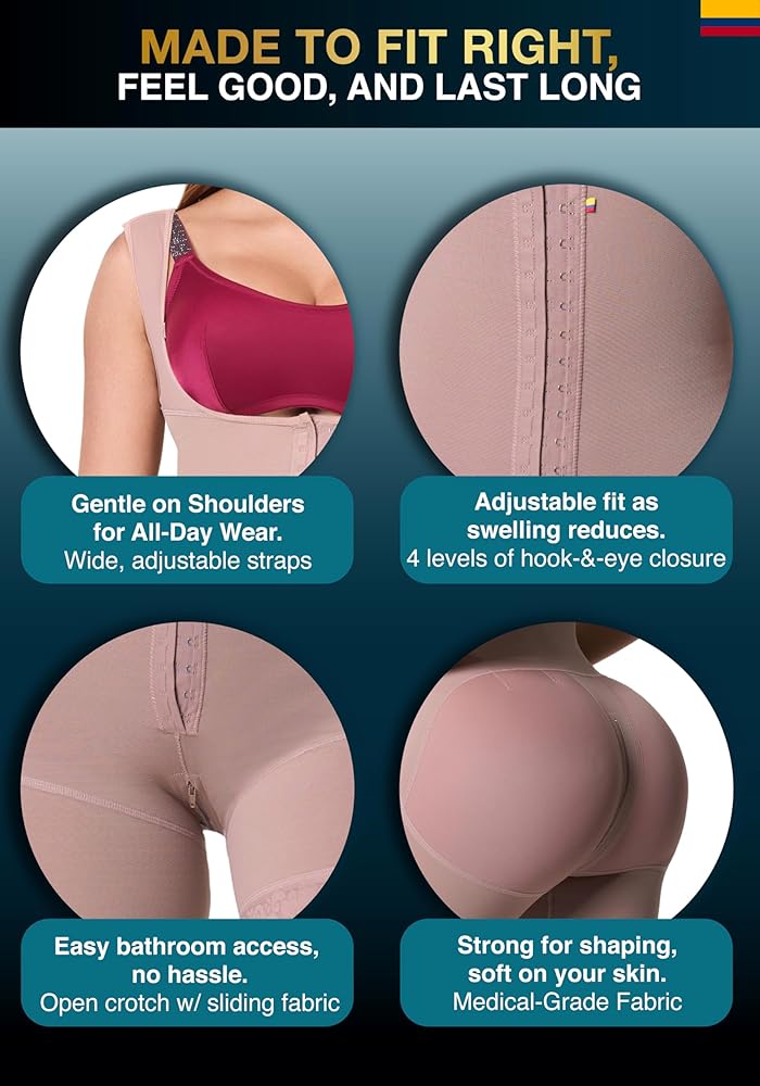 • الرحلة إلى أكثر جمالاً: بينما أنت متحمس لتبدو بأفضل حالاتك، يجب عليك اتباع نصيحة طبيبك والحصول على جراحة فاجا كولومبيانا بعد الجراحة. تحافظ ملابسنا الضاغطة بعد الجراحة على محيط متساوٍ لتجعلك تبدو خاليًا من العيوب على الفور بعد مغادرة غرفة العمليات. ابدأ رحلة التعافي هذه بشكل مريح وانطلق في الطريق نحو أفضل شكل على الإطلاق مع ملابس Sonryse الضاغطة بعد شفط الدهون. قم بشفاء جسمك وحمايته بعد الجراحة باستخدام ملابسنا الضاغطة بعد العملية الجراحية.