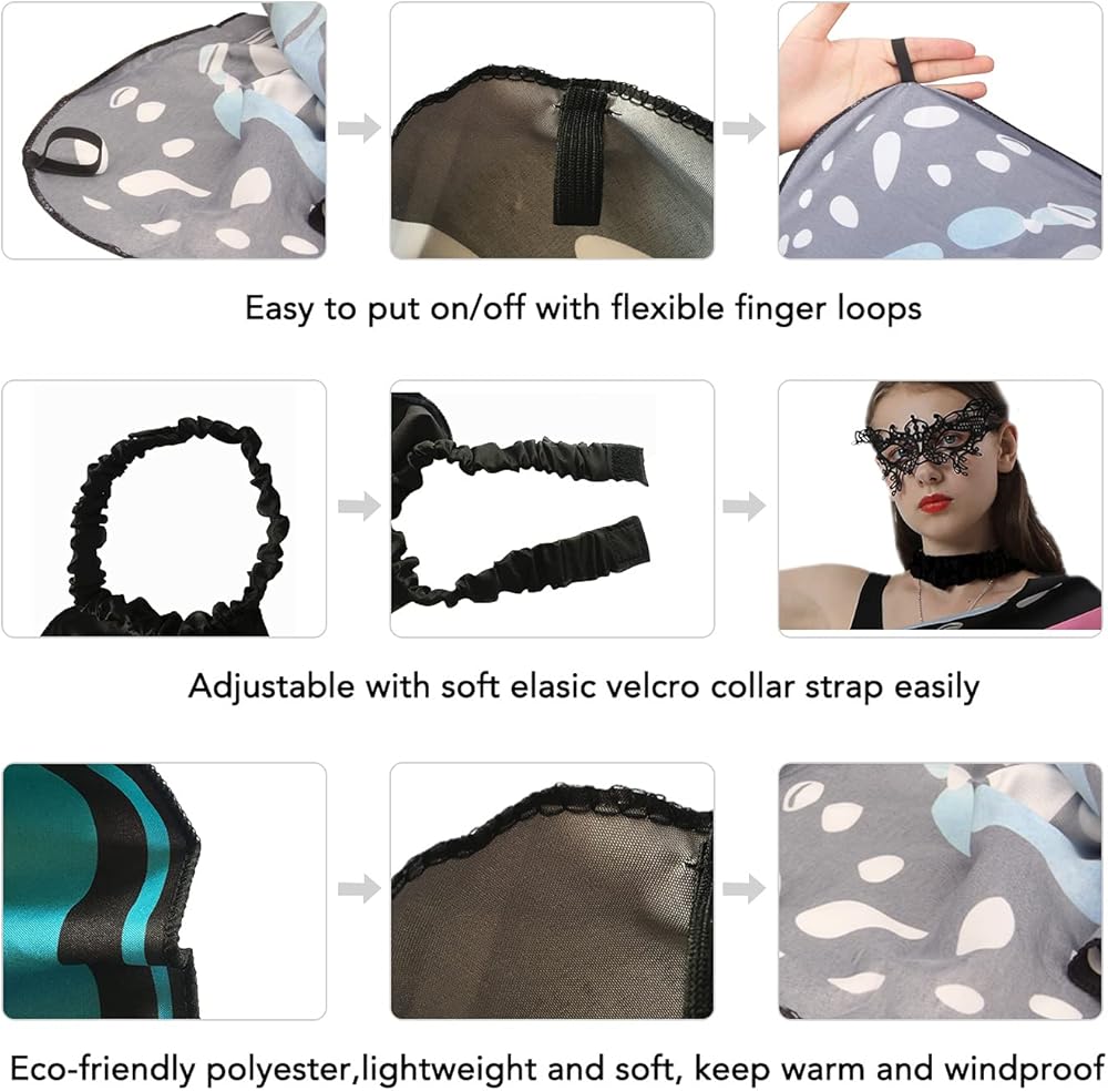 سهل الارتداء: مع شريط ربط قابل للتعديل عند الرقبة وحلقات الأصابع، يمكنك ارتداء وخلع جناح الفراشة النسائي في ثوانٍ. بالإضافة إلى ذلك، يمكنك بسهولة ضبط إحكام قناع الدانتيل وعصابة رأس الهوائي.
