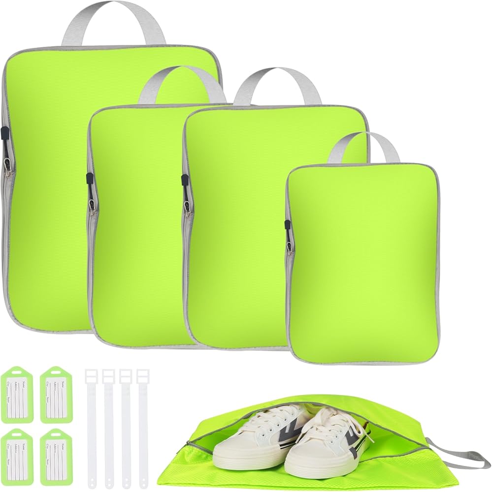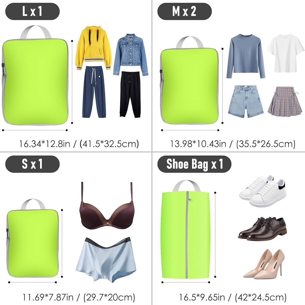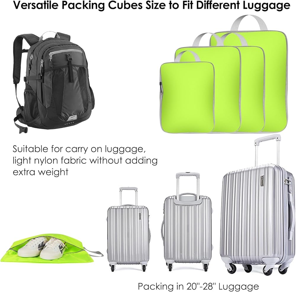 【سهلة الحمل، منظمات أمتعة السفر】 تأتي مكعبات التعبئة في مجموعات من 4 مكعبات ضغط، بأحجام مختلفة وحقيبة أحذية. مكعبات تعبئة بأحجام مختلفة لأغراض التعبئة المختلفة، تجعل ملابسك وإكسسواراتك الأخرى منفصلة وتجنب متاعب البحث في حقيبة السفر الفوضوية.