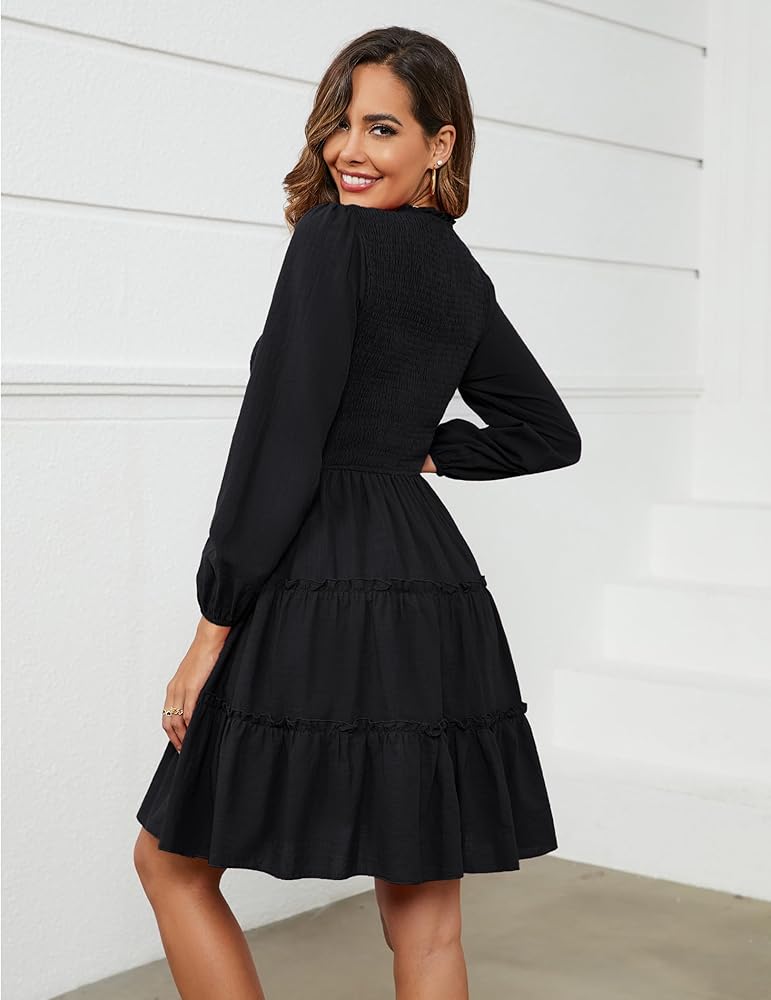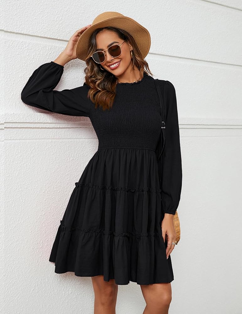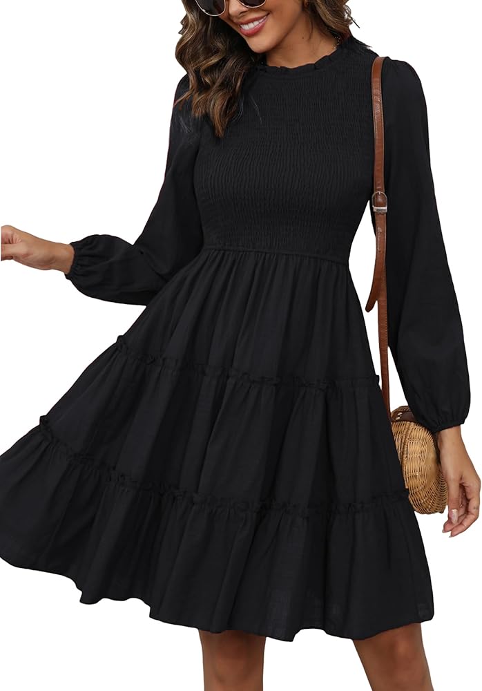 【فستان قصير بأكمام طويلة】: في التسوق، والمواعيد، والحفلات، والسفر، وفساتين قصيرة طويلة الأكمام تتناسب مع الأحذية المختلفة، إنه لك نمط مختلف، ومناسب للعديد من المناسبات، في أي وقت، جميل وأكثر ملاءمة.
