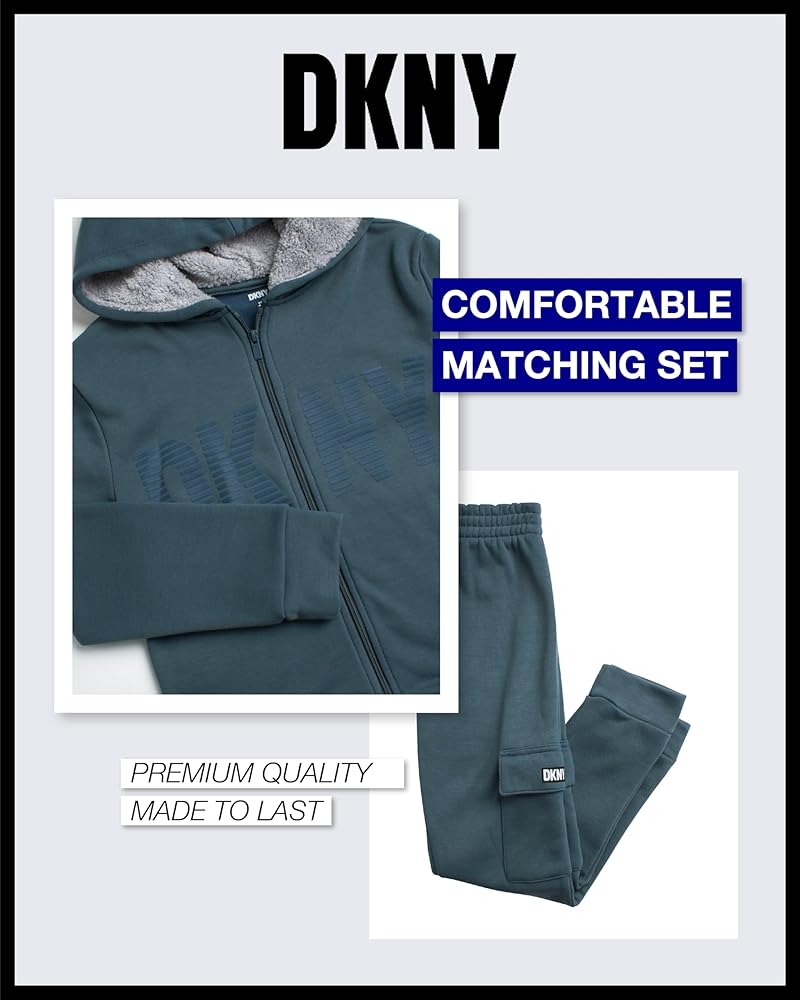 طقم بدلة رياضية للأولاد من DKNY - قطعتين سويت شيرت صوف وبنطلون رياضي (المقاس: 4-12)