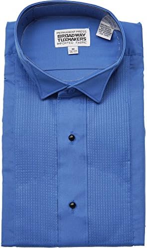 هذا قميص سهرة أزرق ملكي للرجال مع ياقة جناح يتضمن أزرار سوداء وأزرار عادية. يمكن أيضًا أن تستخدم الأصفاد ذات الأزرار روابط الأكمام الاختيارية. هذا القميص سهل العناية به بالضغط الدائم، 35% قطن/65% بوليستر. قميص مثالي لحفلة موسيقية، أو زفاف، أو أي مناسبة رسمية أخرى.