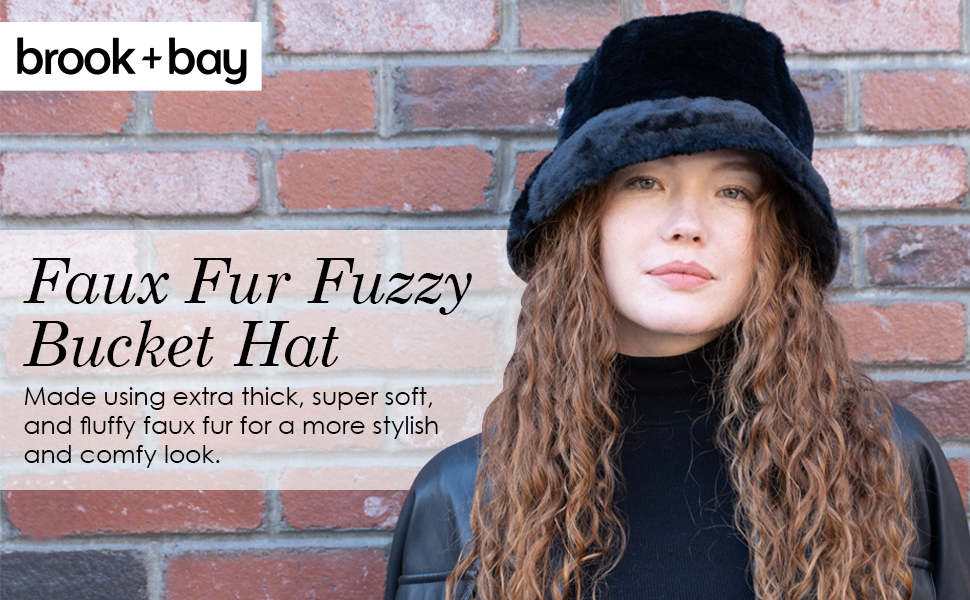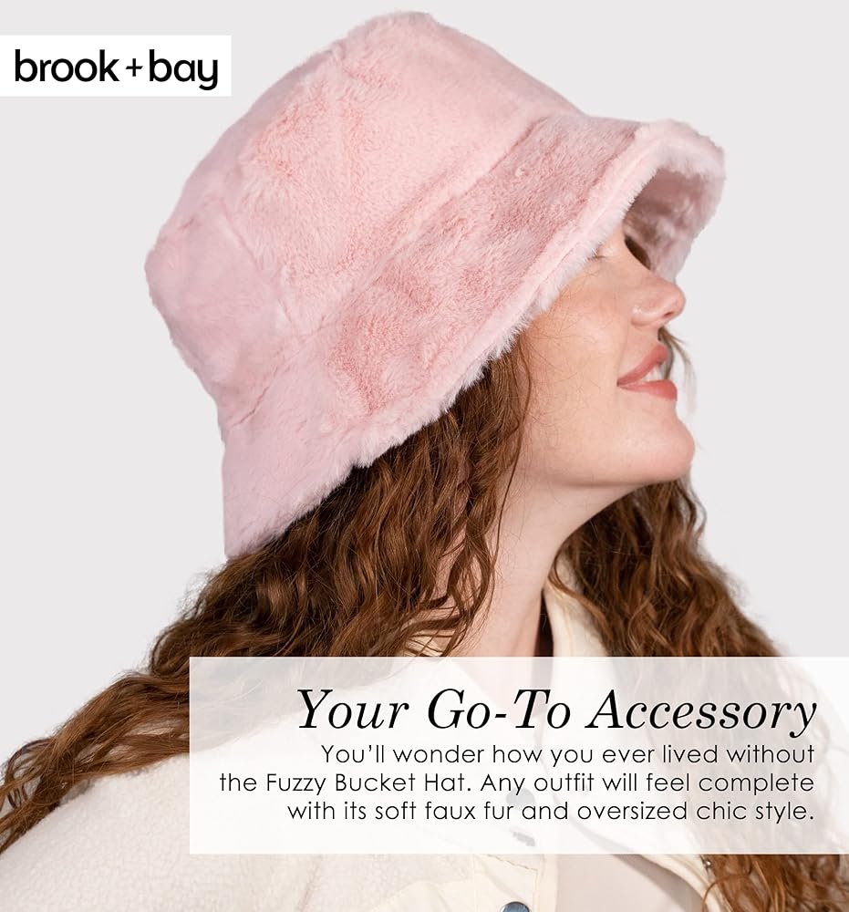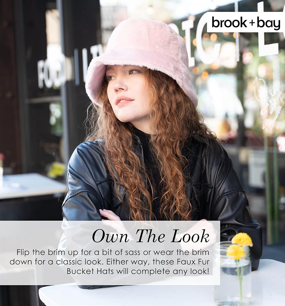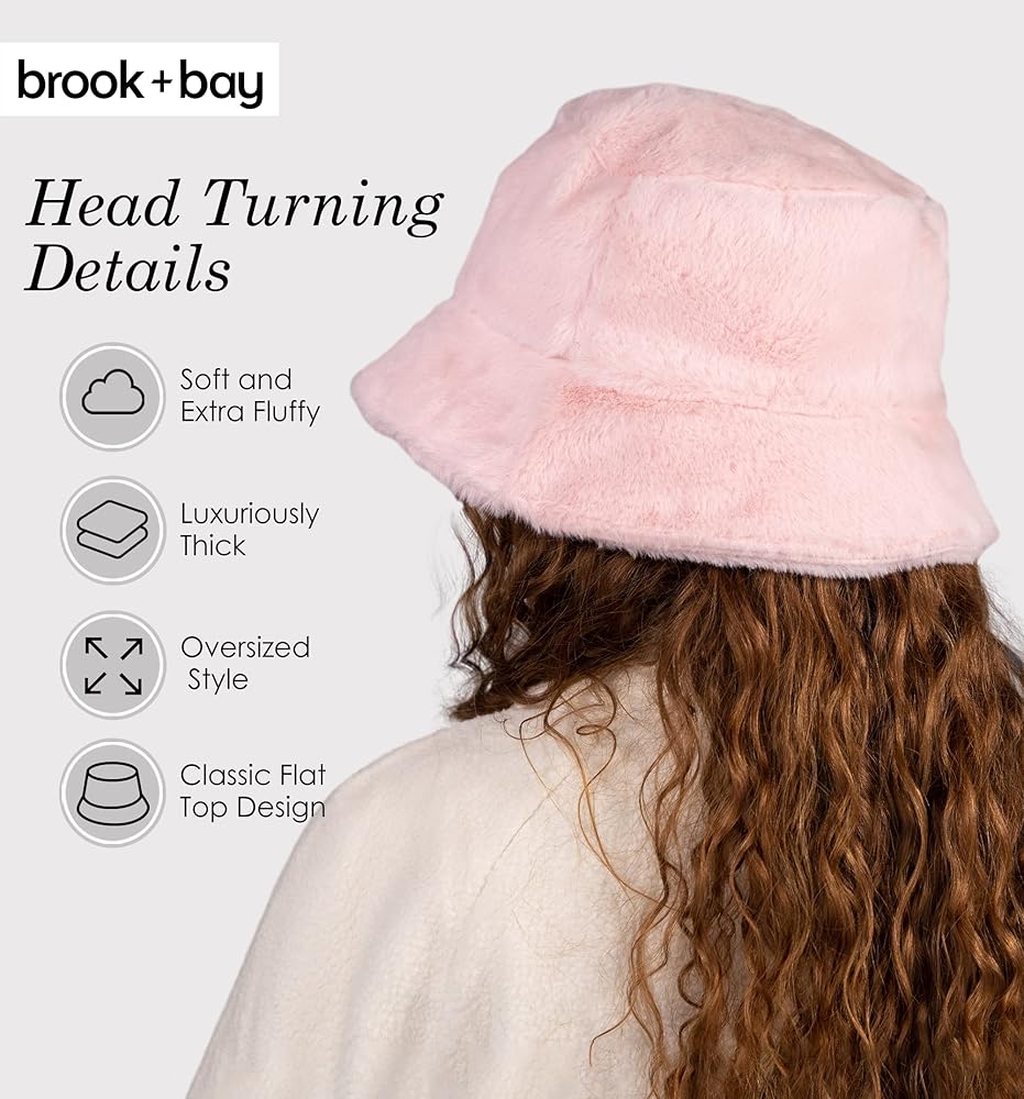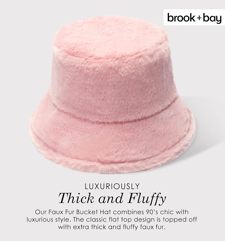 قبعة Brook + Bay من الفرو الصناعي - قبعات دلو غامضة وقبعة فرو - قبعة دلو شتوية، قبعة دلو منفوشة، قبعة دلو فروي