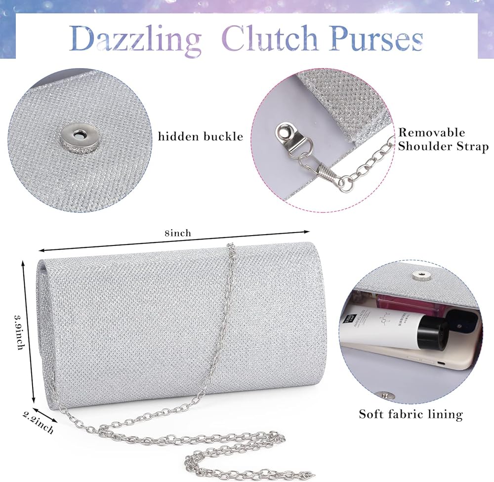 حقائب يد للسهرة: حقيبة يد للسهرة فضية مزينة بالكامل بكريستالات حجر الراين، مما سيجعلك متألقة في كل مناسبة؛ مزيج من السحاب أو التصميم المفاجئ يجعله أكثر ملاءمة للاستخدام