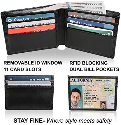 ✅ سعة كبيرة ولكنها نحيفة - يبلغ قياسها 4.3 بوصة × 3.5 بوصة فقط عند إغلاقها، وتتميز محفظتنا الرجالية النحيفة بسعة كبيرة تصل إلى 10 فتحات للبطاقات ونافذة واحدة لبطاقة الهوية. كما أنها تحتوي على محفظة مقسمة للحفاظ على أموالك وإيصالاتك منظمة.