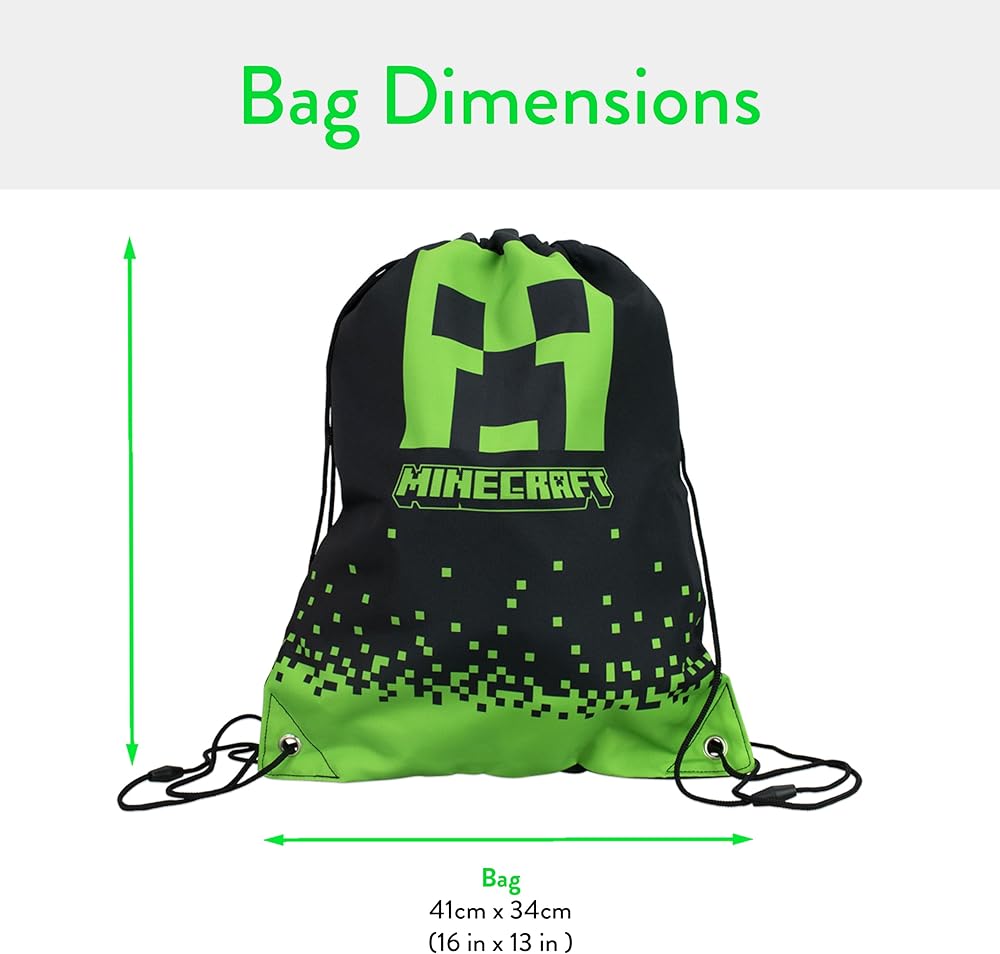 • مساحة تخزين واسعة: قم بتخزين اللوازم المدرسية أو قرطاسية ماين كرافت أو المدربين أو ألعاب ماين كرافت في هذه الحقيبة الواسعة ذات الرباط المصممة للحفاظ على جميع أساسيات العودة إلى المدرسة منظمة.