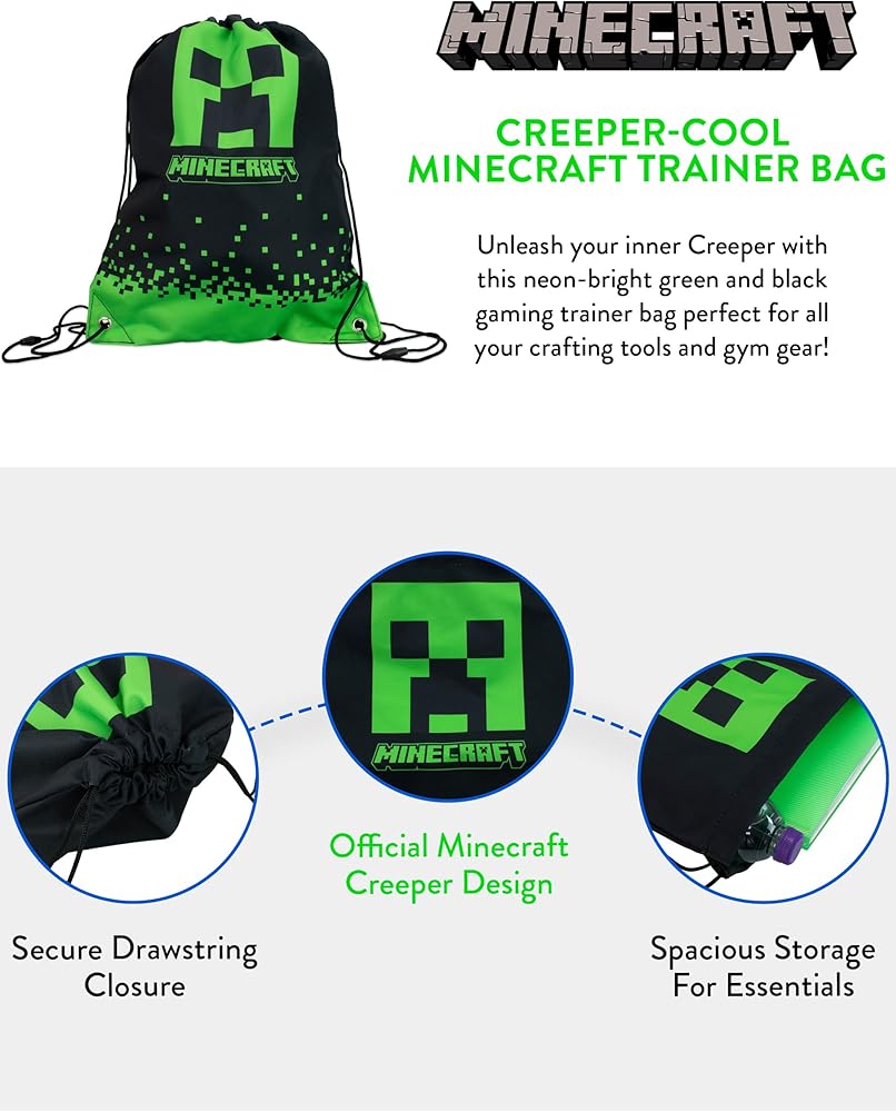 • حقيبة ماين كرافت متعددة الاستخدامات وأنيقة: سواء كنت تستخدمها كحقيبة أحذية ماين كرافت أو حقيبة من البولي ايثيلين أو حقيبة سباحة ممتعة ليوم الخروج، فإن حقيبة التدريب متعددة الاستخدامات هذه مناسبة لمختلف المناسبات وستثير إعجاب عشاق ماين كرافت creeper الآخرين.