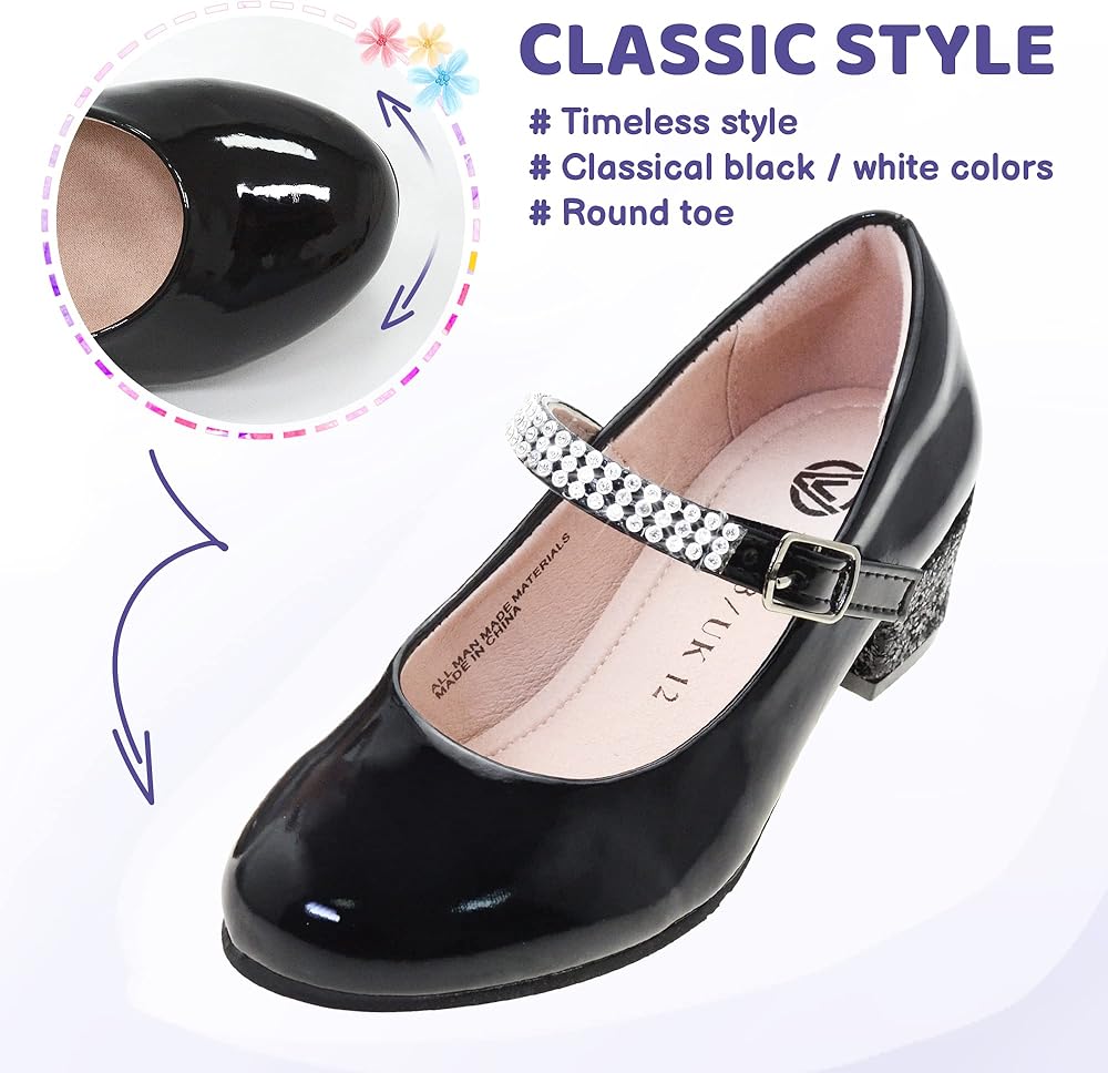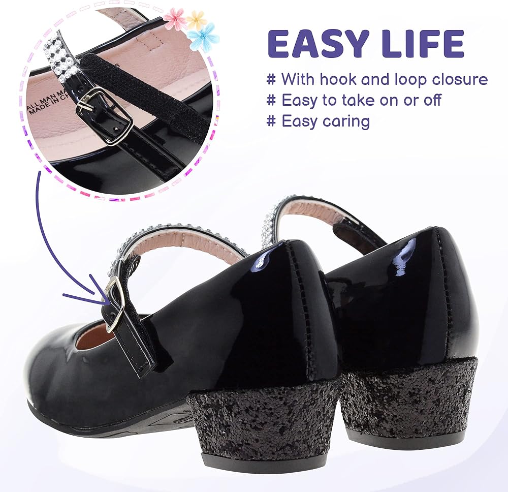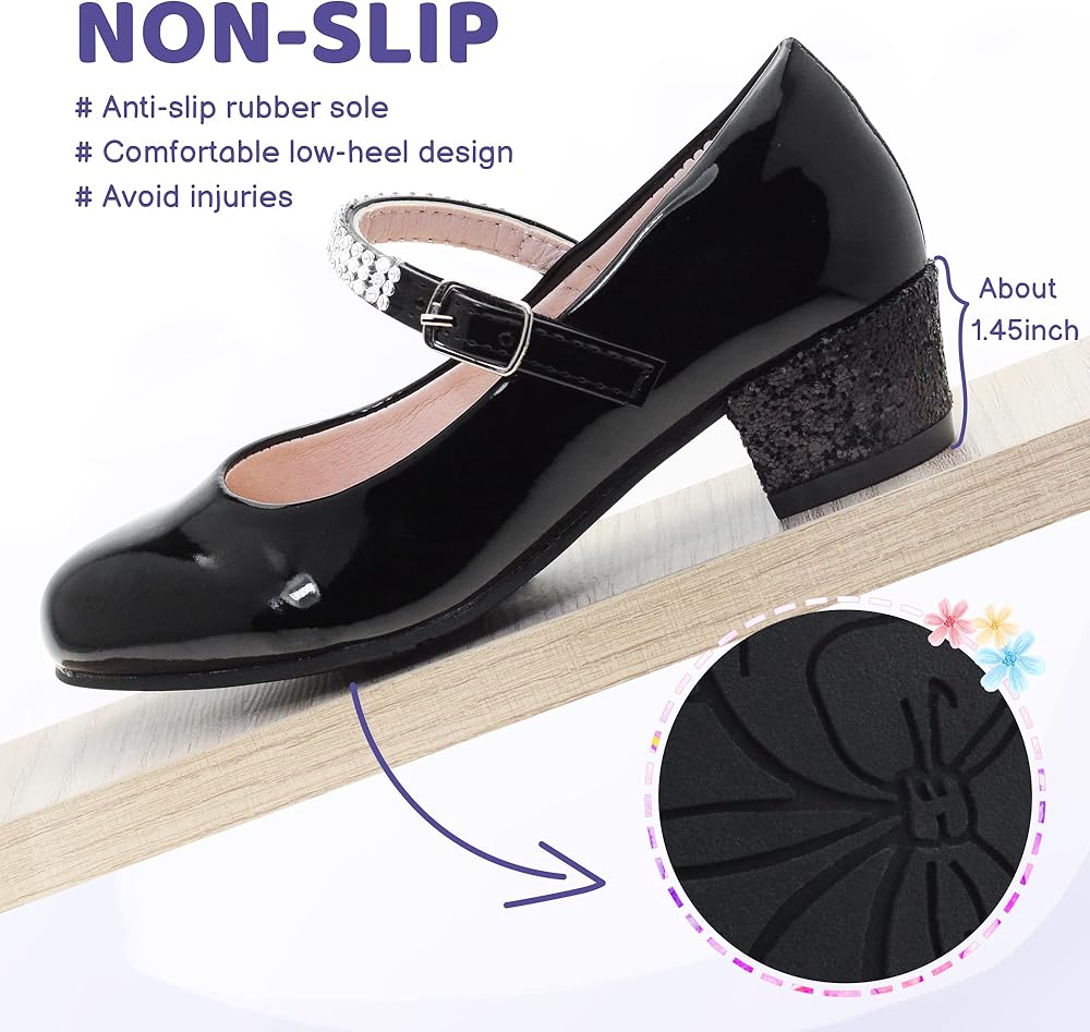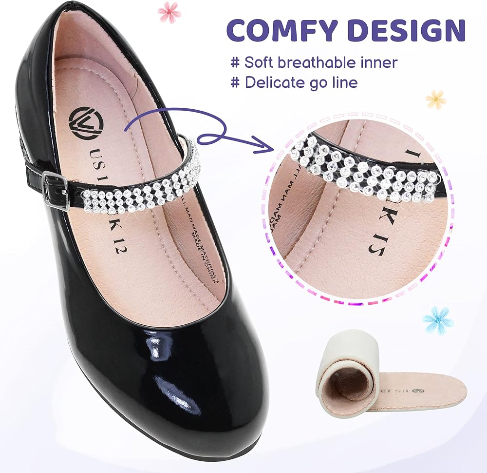 [تصميم مريح عند أصابع القدم]: تتميز أحذية الفساتين للفتيات اللامعة هذه بمقدمة مستديرة مريحة وجزء داخلي ناعم لدعم القدم الكافي.
