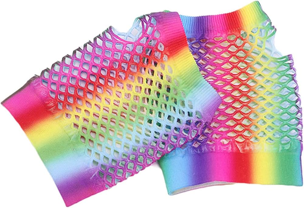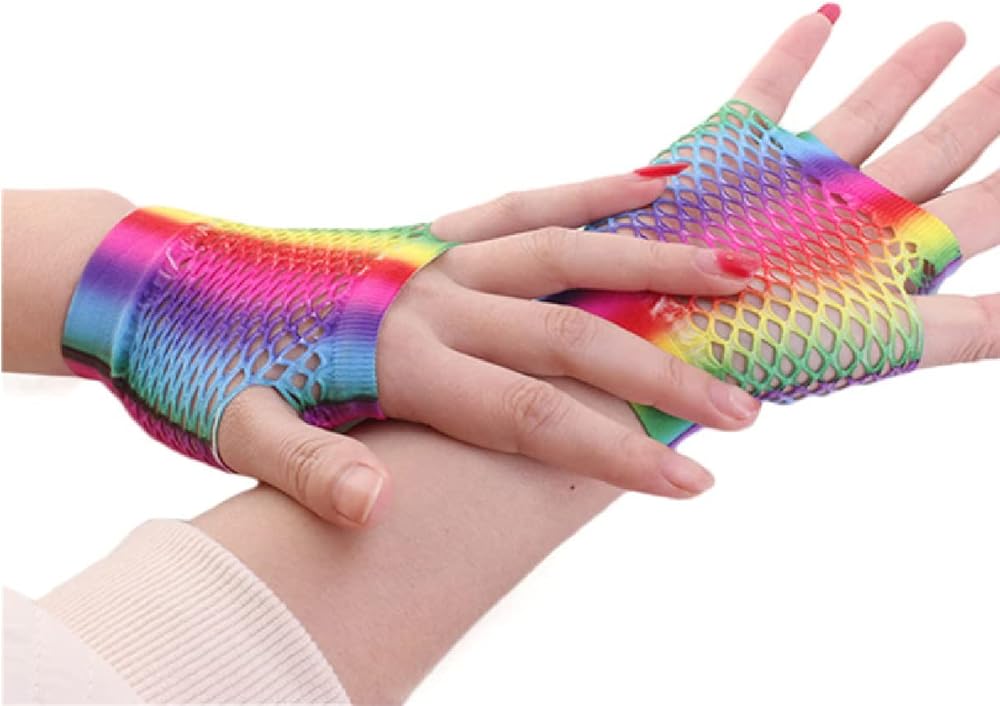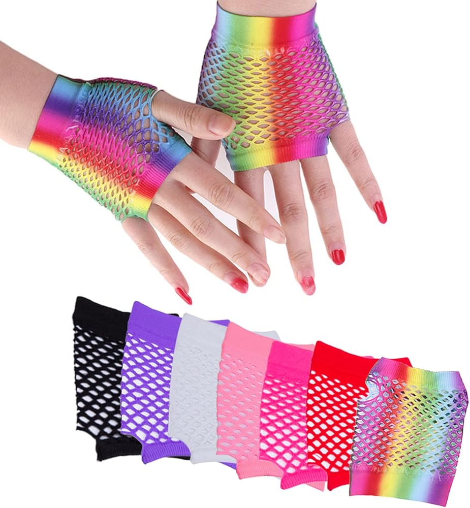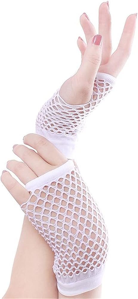 كانت القفازات الشبكية بدون أصابع من النايلون مشهورة في الثمانينيات؛ وهي إكسسوارات كلاسيكية رائعة، ومناسبة للحانات والنوادي الليلية وحفلات أعياد الميلاد وحفلات الرقص وعروض الفرق