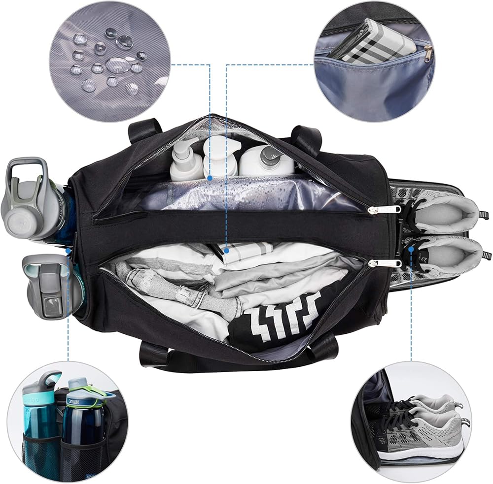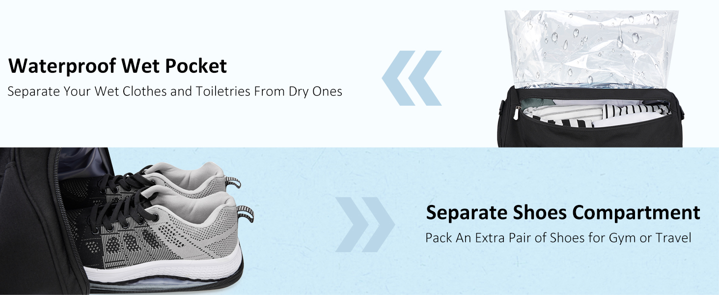 تصميم منفصل جاف ورطب: تتكون حقيبة الصالة الرياضية هذه من مساحات مختلفة لفصل أغراضك الرطبة والجافة والنظيفة والمتسخة؛ تحتوي على جيب واحد مبطن بسحاب مقاوم للماء من مادة PVC، والذي يتميز بمقاس 16.5 بوصة × 11 بوصة، مما يوفر مساحة واسعة لملابسك المبللة وأدوات النظافة، بالإضافة إلى حجرة واحدة للملابس الجافة والنظيفة أو كل شيء لصالة الألعاب الرياضية وضروريات السفر وجيب داخلي صغير لمستلزماتك. أشياء صغيرة مهمة