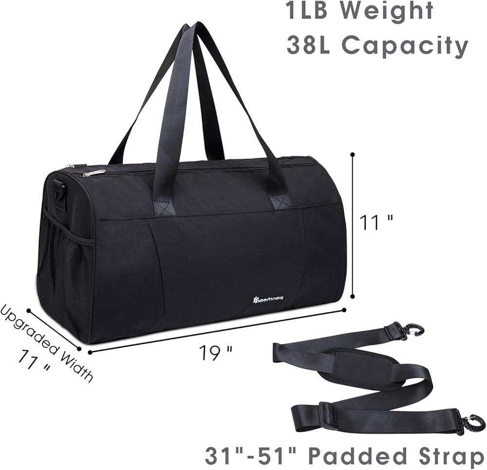 الأبعاد والمواد: تتميز حقيبة الصالة الرياضية هذه بمقاس 48.26 سم × 27.94 سم × 27.94 سم بسعة 38 لتر على أقصى حد، الحقيبة الرياضية مصنوعة من أقمشة فاخرة متينة ومقاومة للماء، ومجهزة بسحابات ممتازة يمكنها تحمل الثقل يوميًا؛ تتميز بمقابض مزدوجة وحزام كتف مبطن قابل للتعديل والفصل لحمل مريح؛ الجزء السفلي مصنوع من مواد ذات سماكة إضافية لتشكيل حقيبة أكثر أناقة