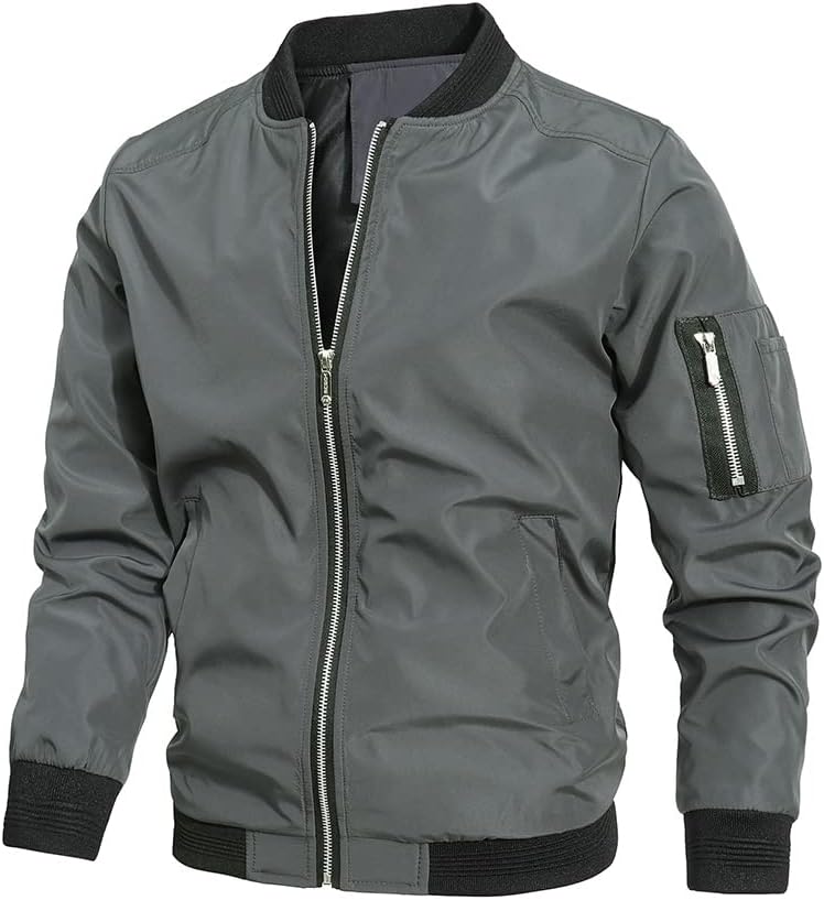 • سترة بومبر طيران كاجوال للرجال مقاس نحيف خفيفة الوزن سترة واقية من الرياح، ملابس رياضية، معطف سترة بيسبول مقاوم للرياح