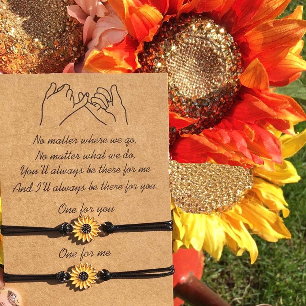 • Inspirational Sunflower Accessories - Inspired by the song of "You are my sunshine",This Necklace is crafted by artisans on metal and message “You are my sunshine” hidden in sunflower locket necklace; This Bracelet is Let this sunflower charm bracelet remind you of the light and happiness you brought to me, no matter the distance! That's Our Pinky Promise;It represents a firm belief in the heart, which means bravery and loyalty.