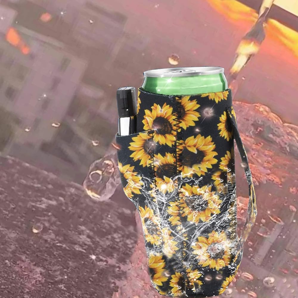 • Stunning Novelty Item - This chapstick holder with a keychain ring on it is going to make your life so much easier,Find your Lipstick easily wherever you are;Handmade set of Wristlet Key Chains is a great way to keep your keys handy while keeping your hands free;Sunflower Slim Can Holder they have a handle sewn onto them to help you carry your tumblers around in style and comfort,No more buying different pattern tumblers that take up a ton of space in your cabinet!