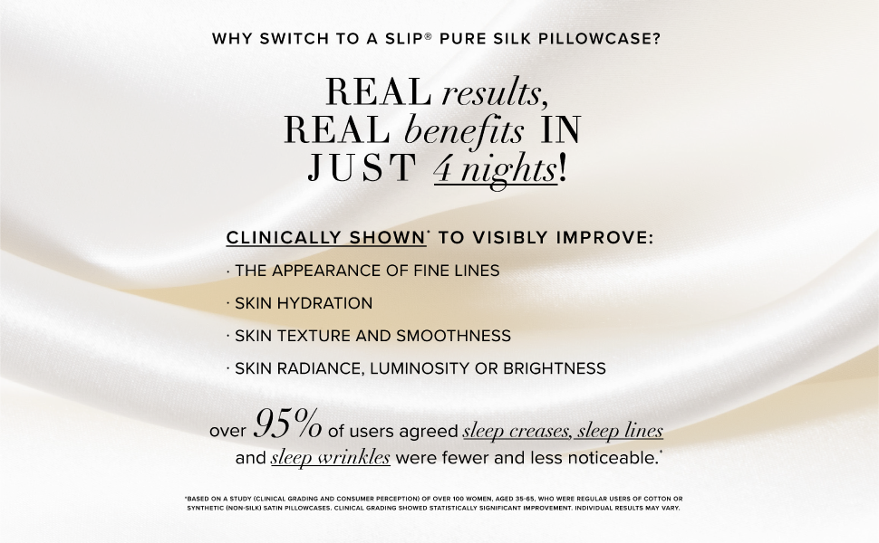 Anti-bedhead - Ordinary pillowcases can cause hair tangling during the night. In laboratory testing, Slipsilk has been shown to reduce friction by 43% on average,* which can reduce stretching and tugging on hair and delicate facial skin. *Compared to widely-available cotton pillowcases with a 220-360 thread count.