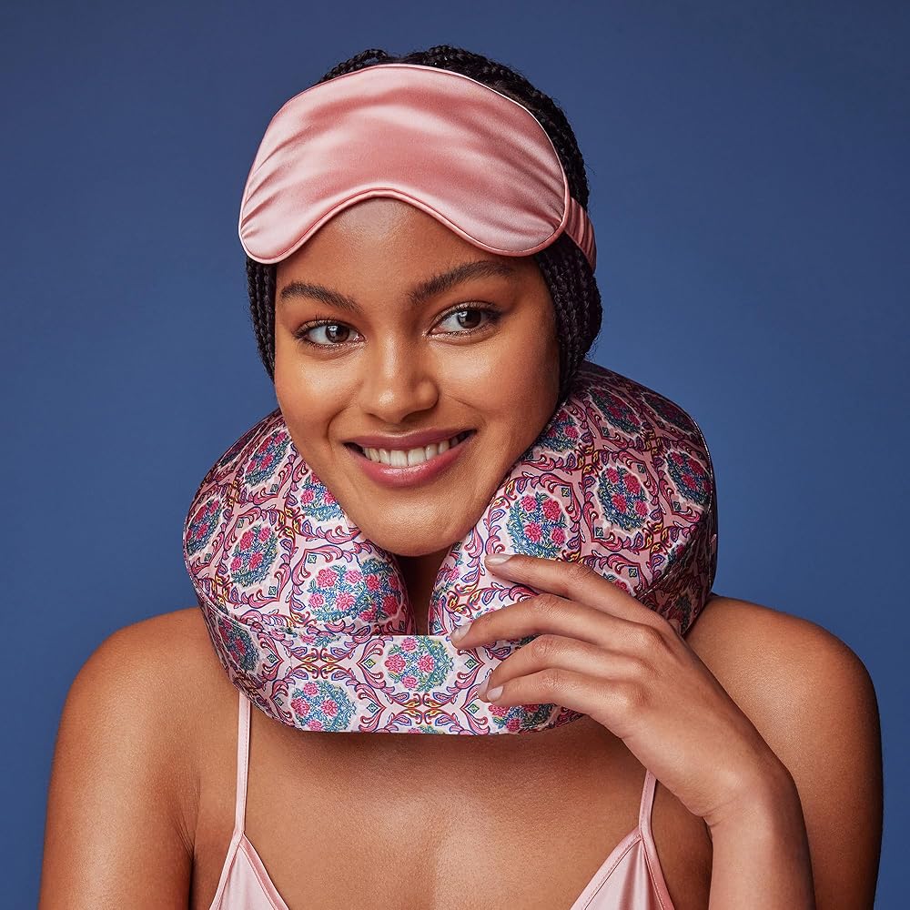 This set includes: 1 x pure silk neck pillow, 1 travel bag, and 1 x pure silk sleep mask.