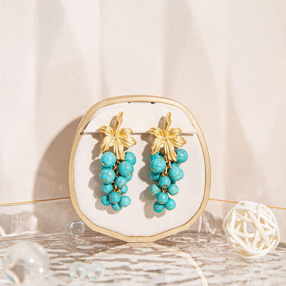مجالات أنيقة وتفاصيل مبهرة: زيّن نفسك بالأناقة. أقراطنا المتدلية الفيروزية مصنوعة من النحاس المطلي بالذهب عالي الجودة، وتتميز بخرز رائع على شكل كرة، مقترنة بدقة بطبقات ذات حجم متزايد. تُظهر الخرزات الكبيرة الموجودة بالقرب من أذنك غلافًا نحاسيًا يلمع ببراعة، مما يضيف لمسة من التألق إلى مظهرك.