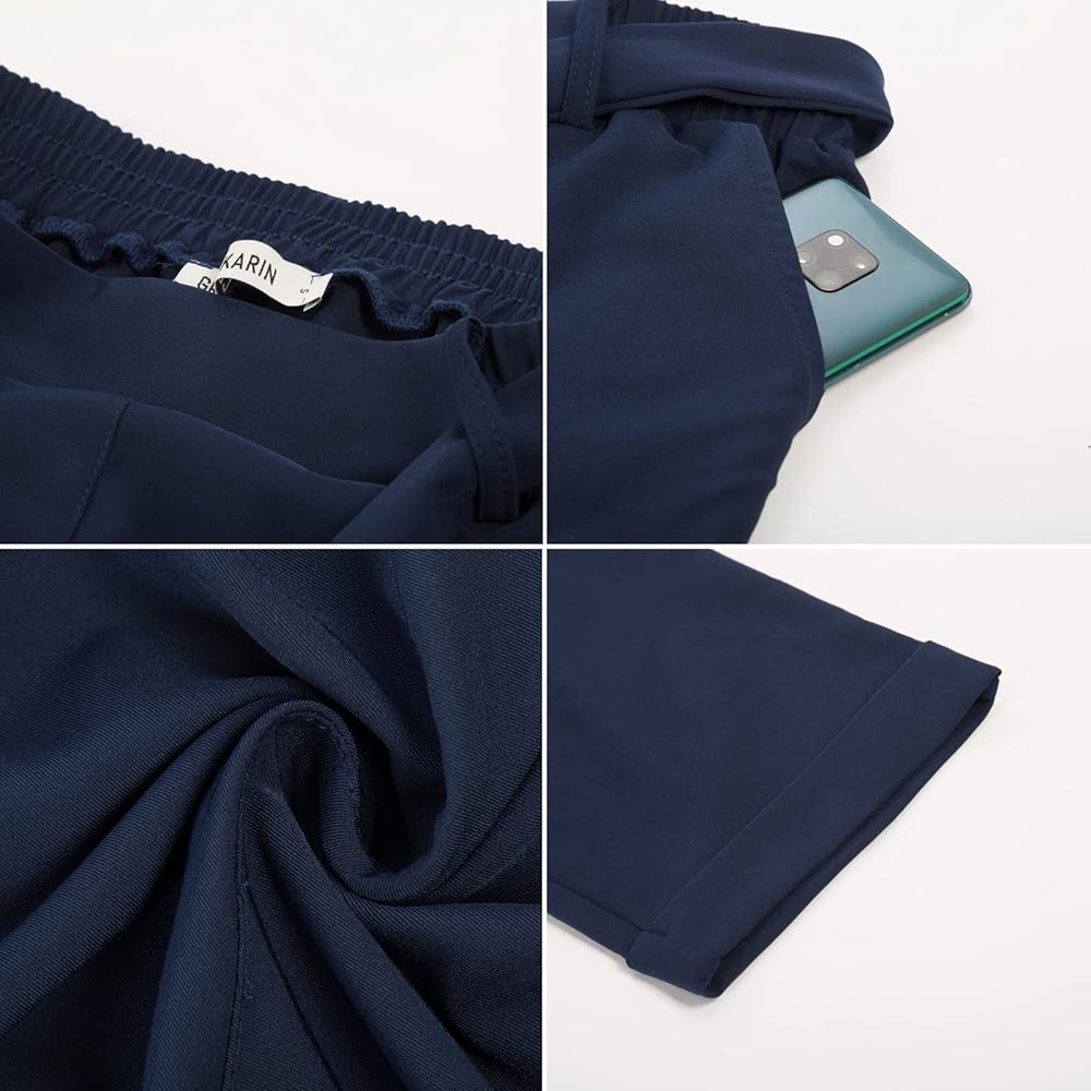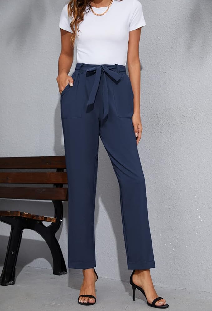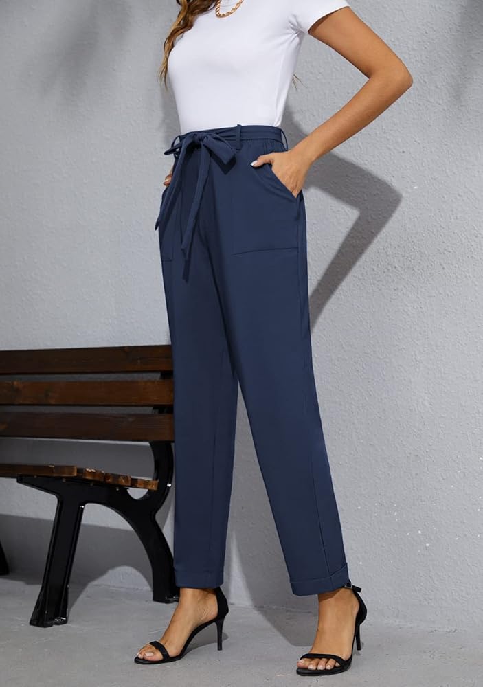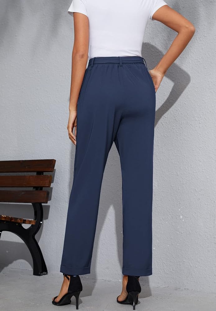 خصر عالي مع حزام -- تتميز هذه السراويل بخصر مطاطي وحزام مطابق قابل للإزالة. يبدو التصميم عالي الخصر أنيقًا وعصريًا، كما أن زخرفة الساق المستقيمة تناسب معظم الأشخاص.