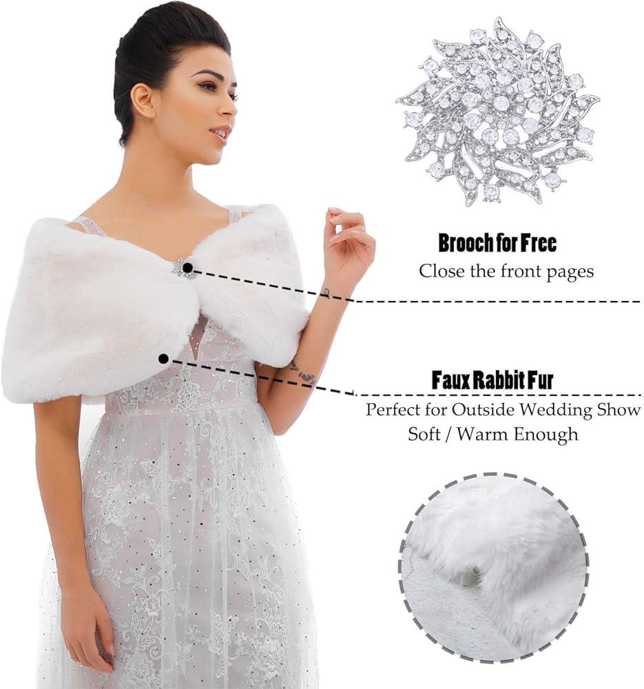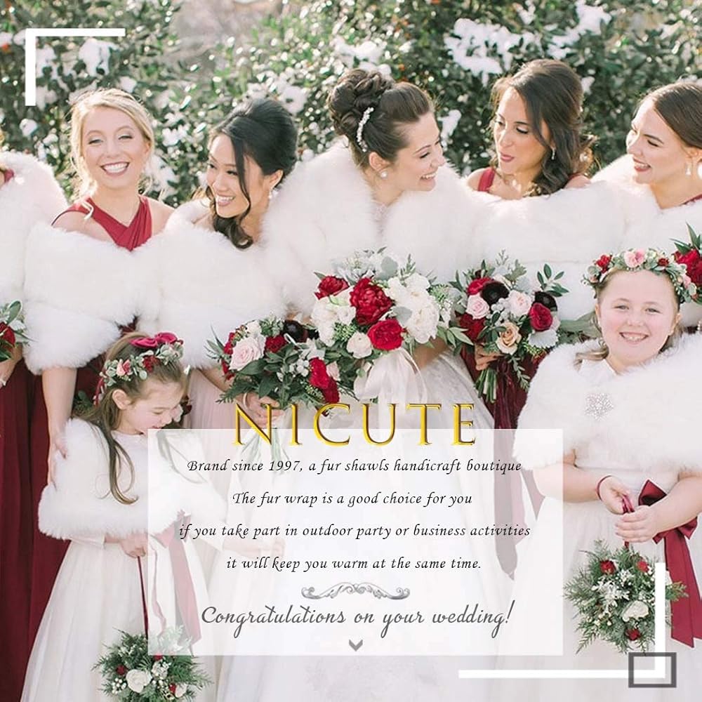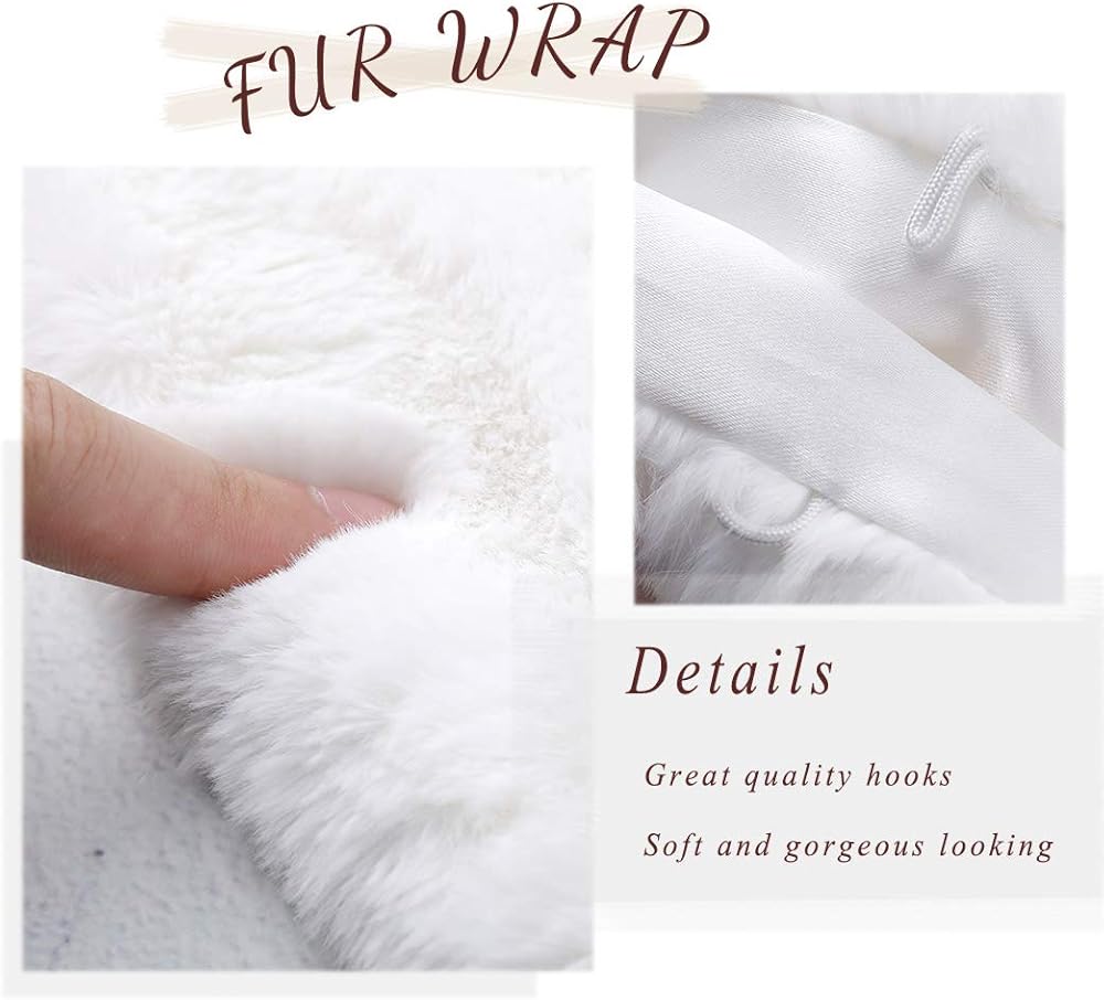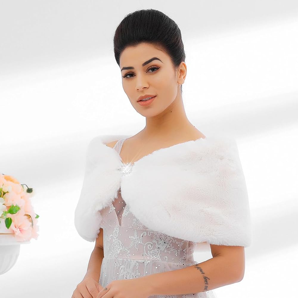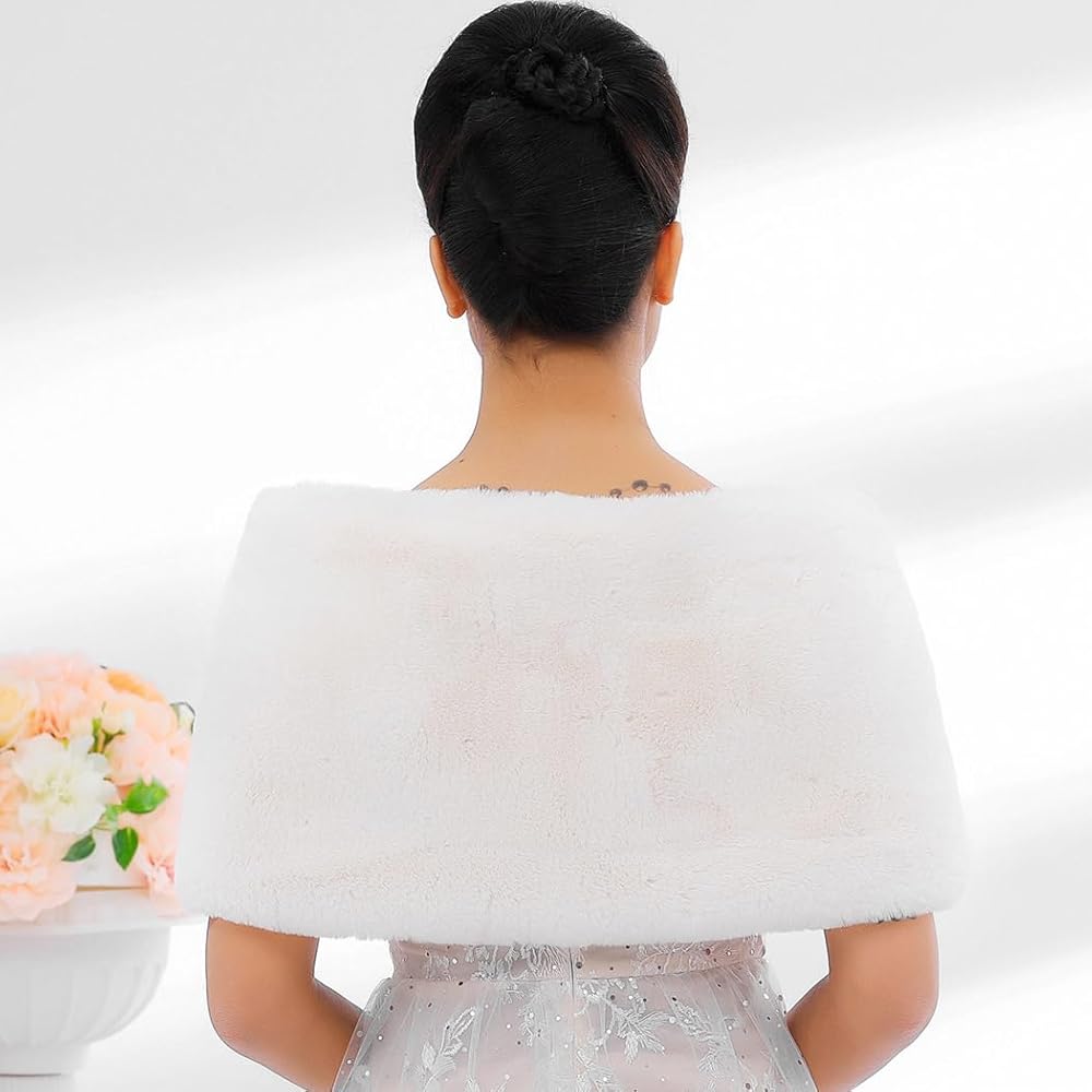 - شال فراء الزفاف مصنوع من الفرو الصناعي والساتان والسبائك. مظهر رائع للعروس ووصيفات العروس.