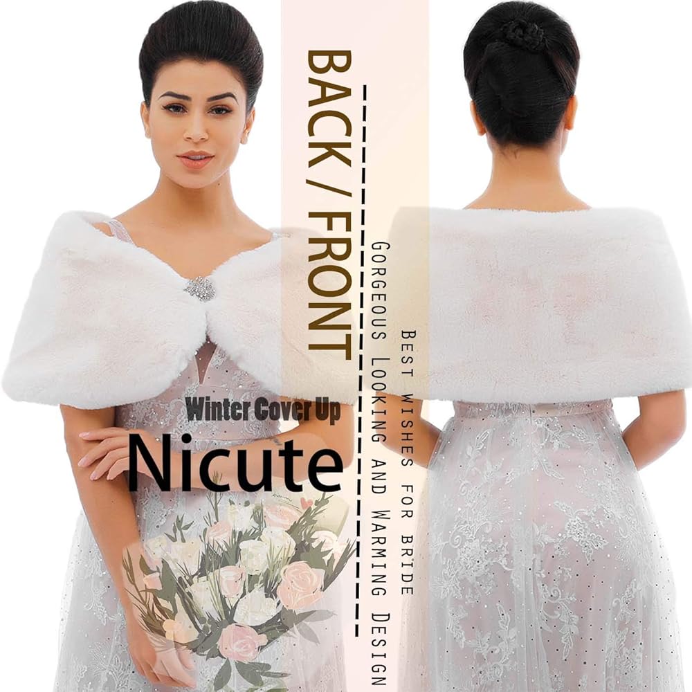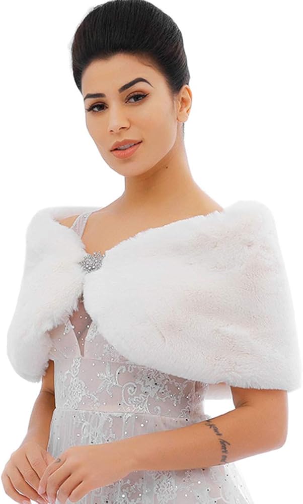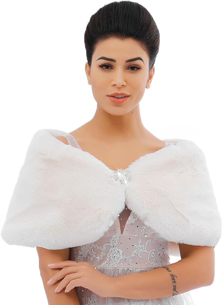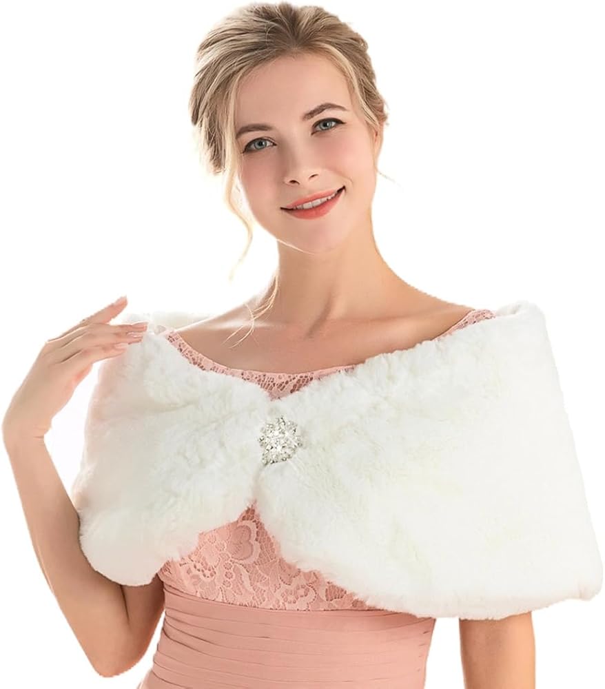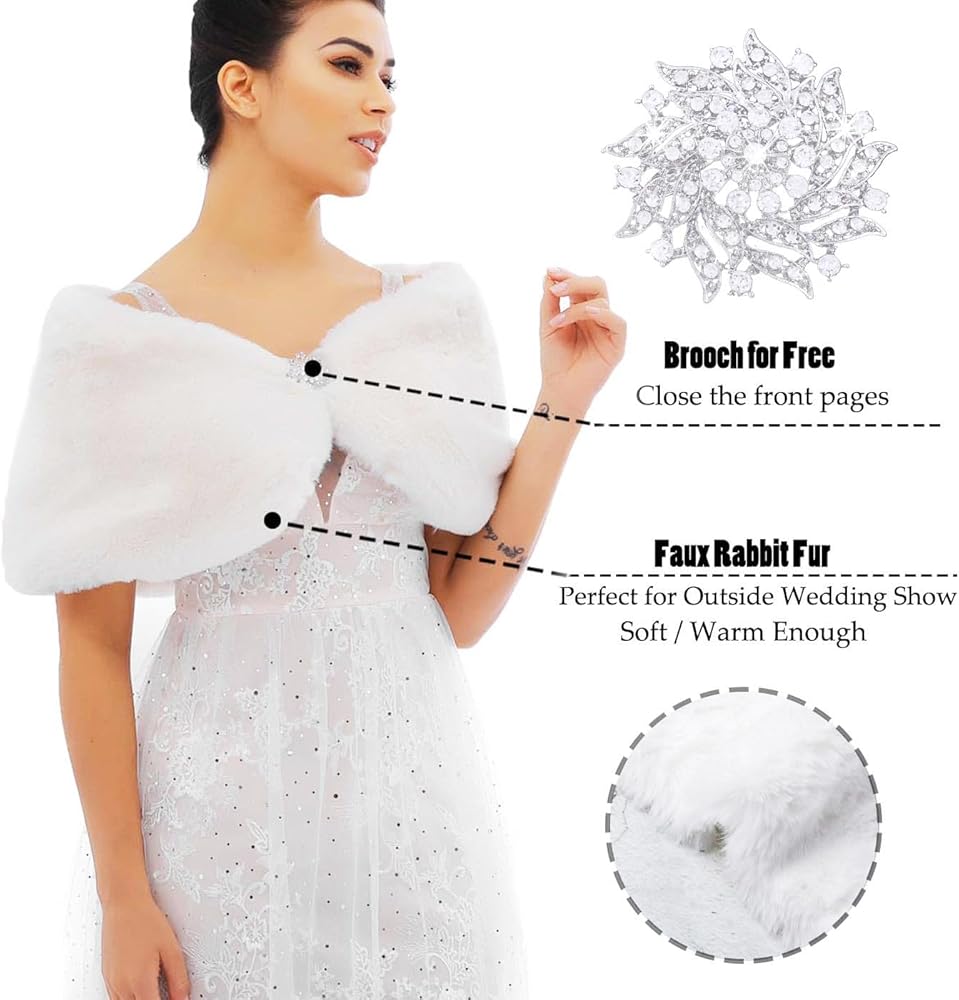 - شال فراء الزفاف مصنوع من الفرو الصناعي والساتان والسبائك. مظهر رائع للعروس ووصيفات العروس.