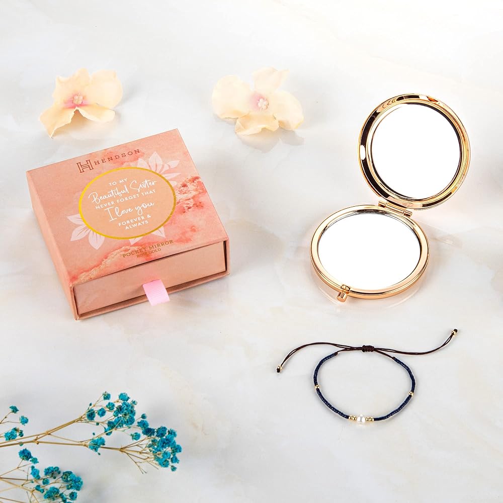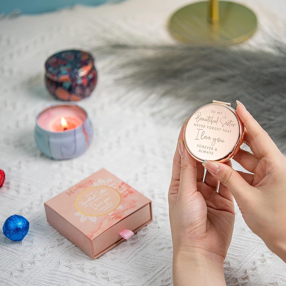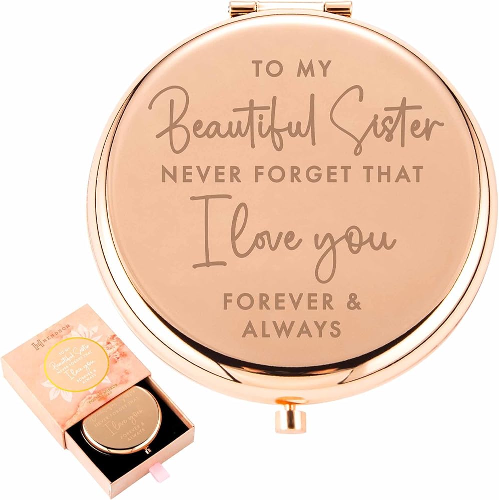 ✅ رسالة مغلفة بالقلب الذائب: ستحب أختك هذه المرآة الذهبية الوردية الأنيقة مع رسالة الحب محفورة في حروف الخط. إذا كنت تبحث عن أفكار هدايا خاصة لأخت يصعب التسوق بها ويبدو أن لديها كل شيء، فأنت في المكان الصحيح.