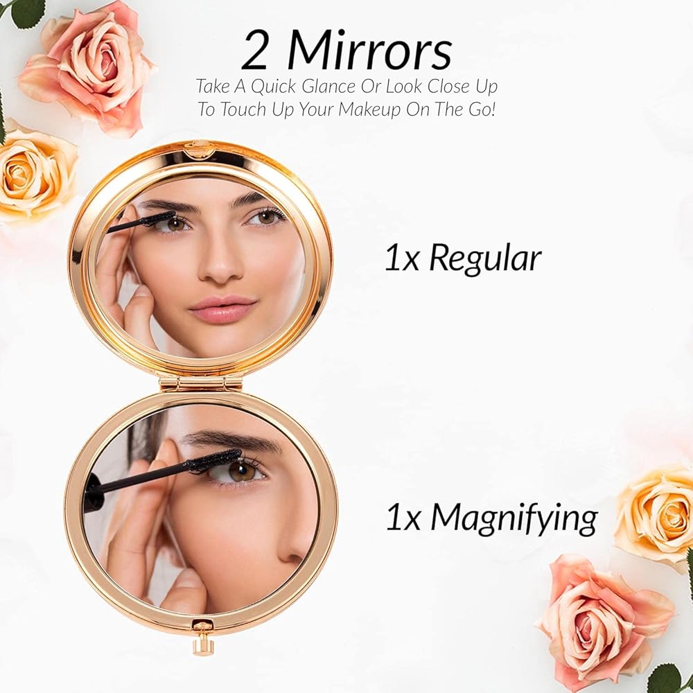 ✅ أداة مكياج عملية للسفر : مع هذه المرآة المدمجة، ستتمكن أختك من إضافة اللمسة النهائية إلى مكياجها في أي مكان. المرآتان - واحدة عادية وأخرى مكبرة - ستضمن أن تبدو خالية من العيوب في أي وقت - في المكتب أو في صالة الألعاب الرياضية أو في الحفلات أو أثناء سفرها.