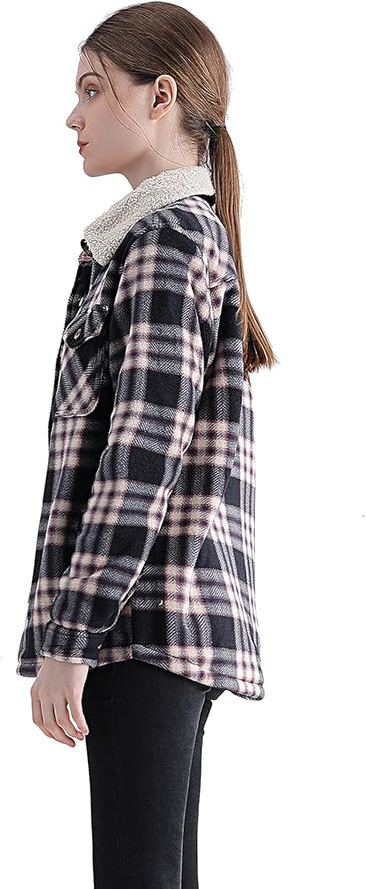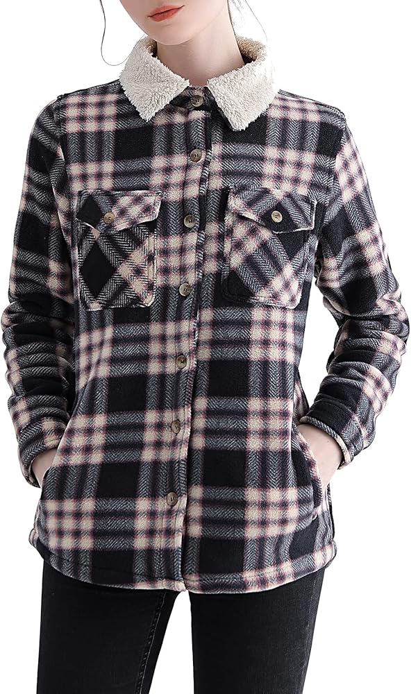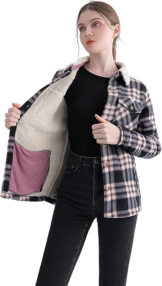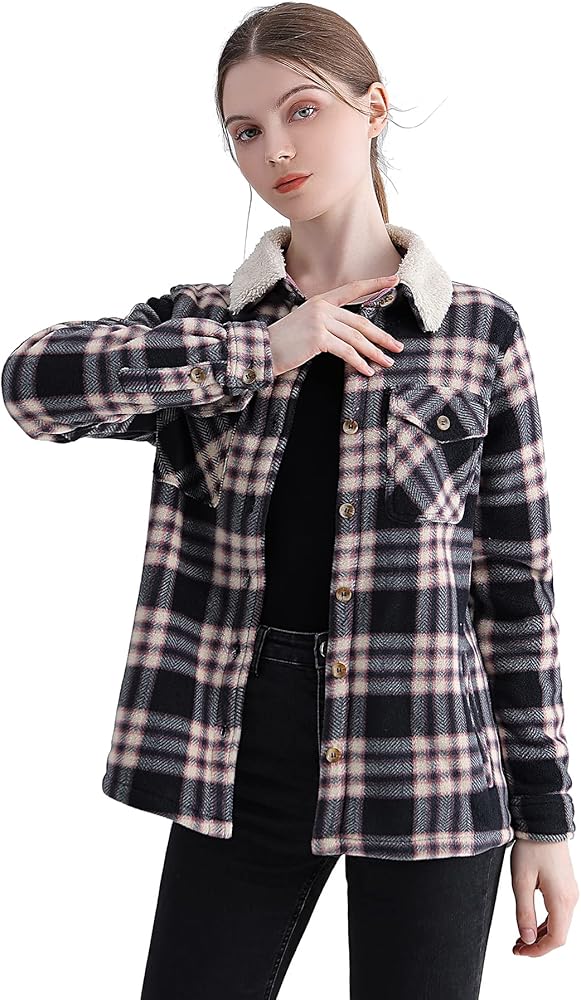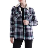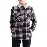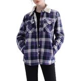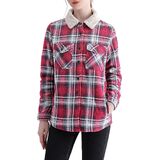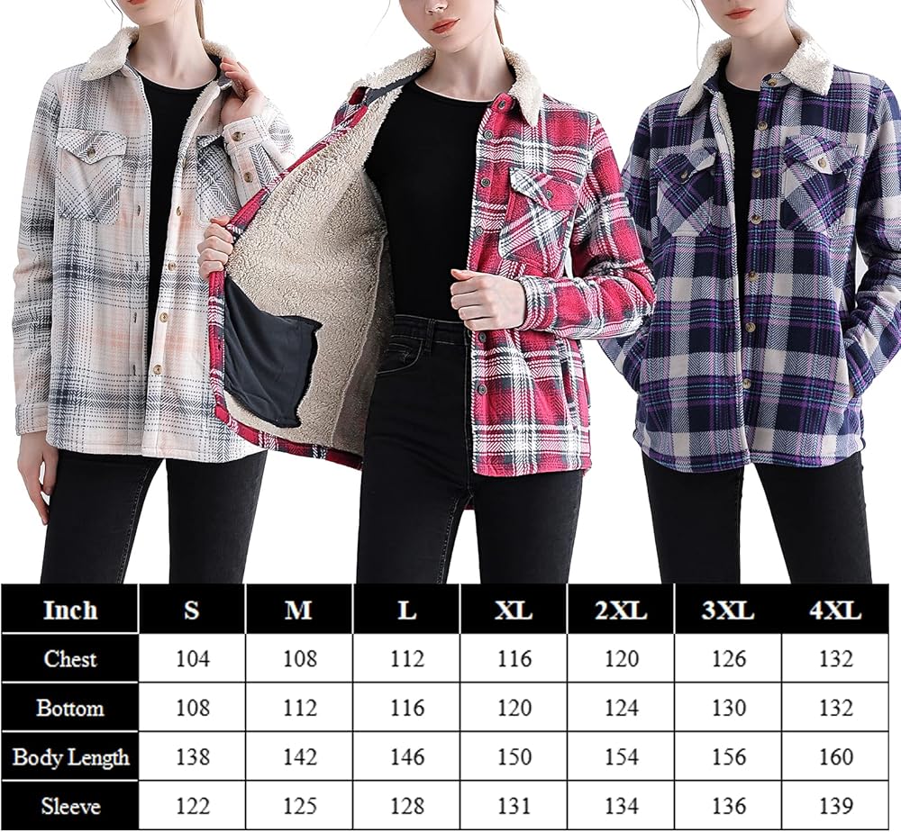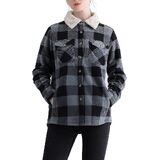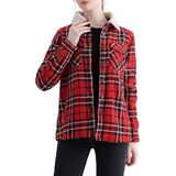 التصميم: سترة نسائية شتوية منقوشة من الفلانيل مع زر أمامي كامل للإغلاق، وأساور أكمام بزر للإغلاق، وبطانة من الفرو الصناعي، وجيبين على الصدر، وجيبين لليدين، وياقة وأساور أكمام مبطنة بالشيربا، تصميم فلانيل كلاسيكي.