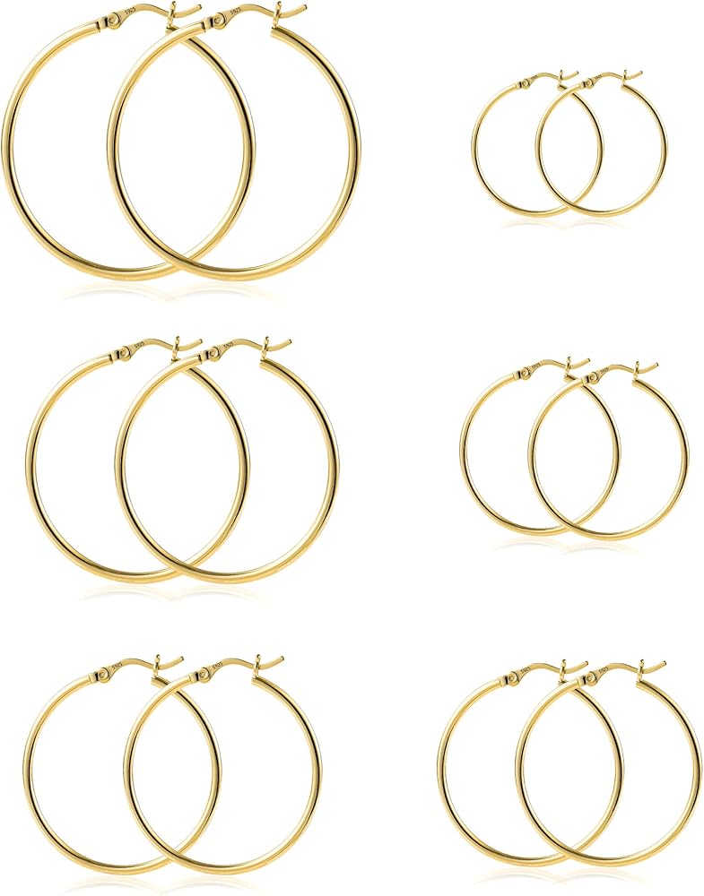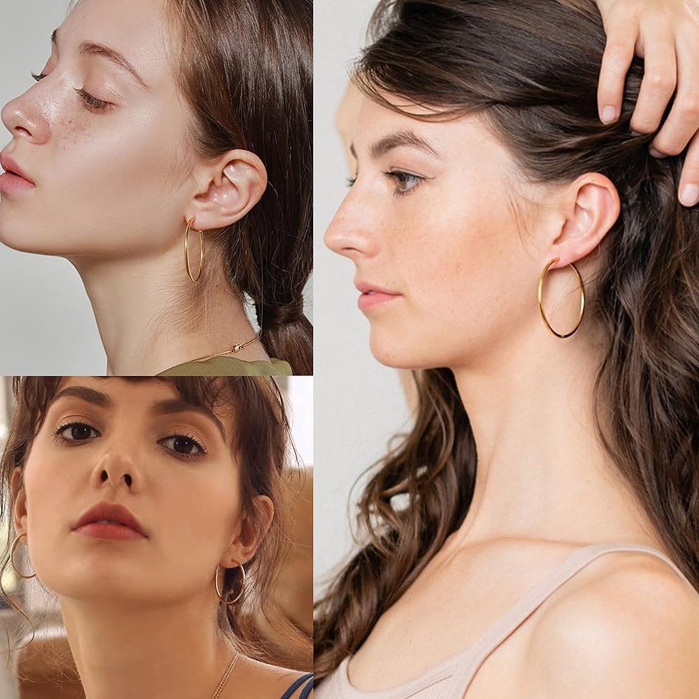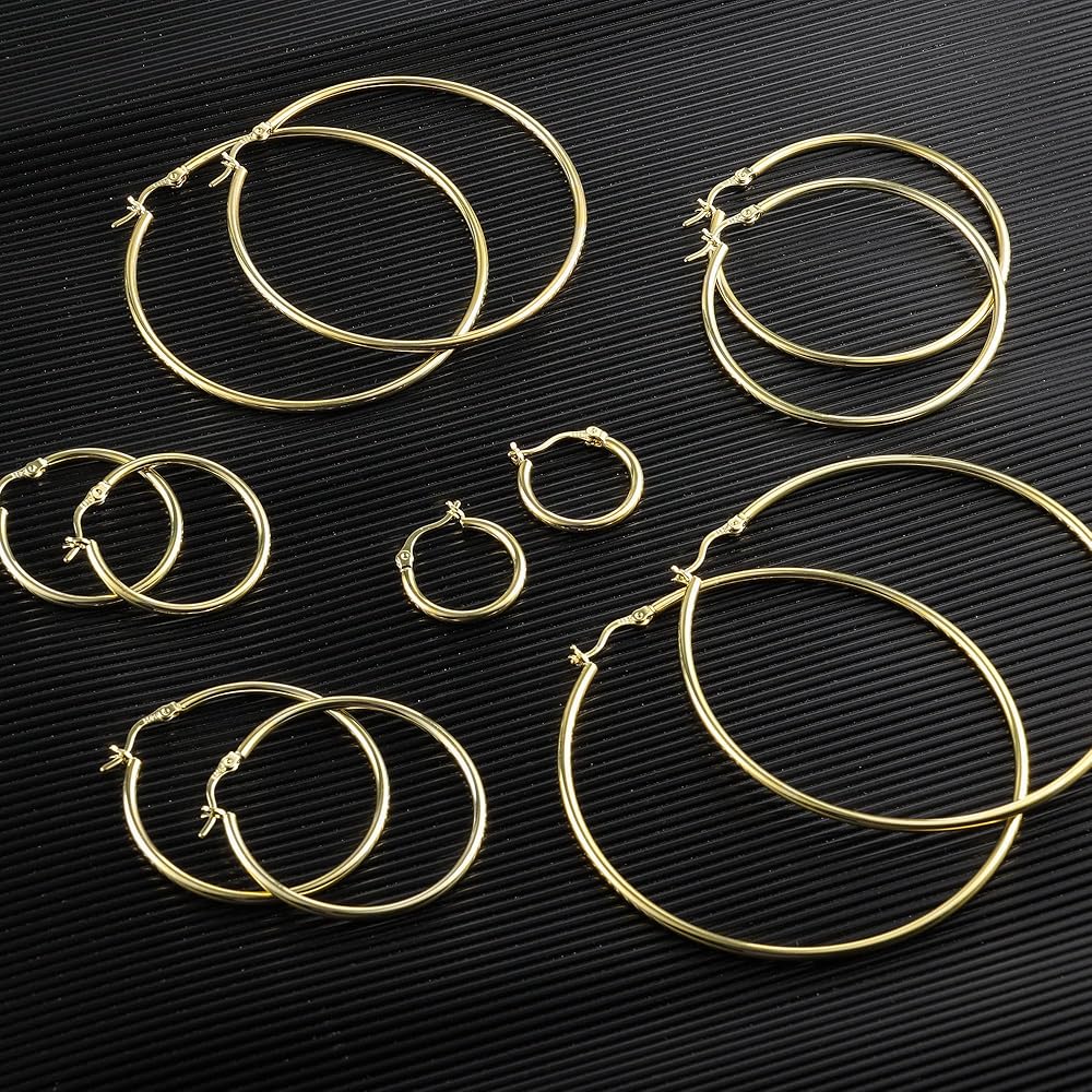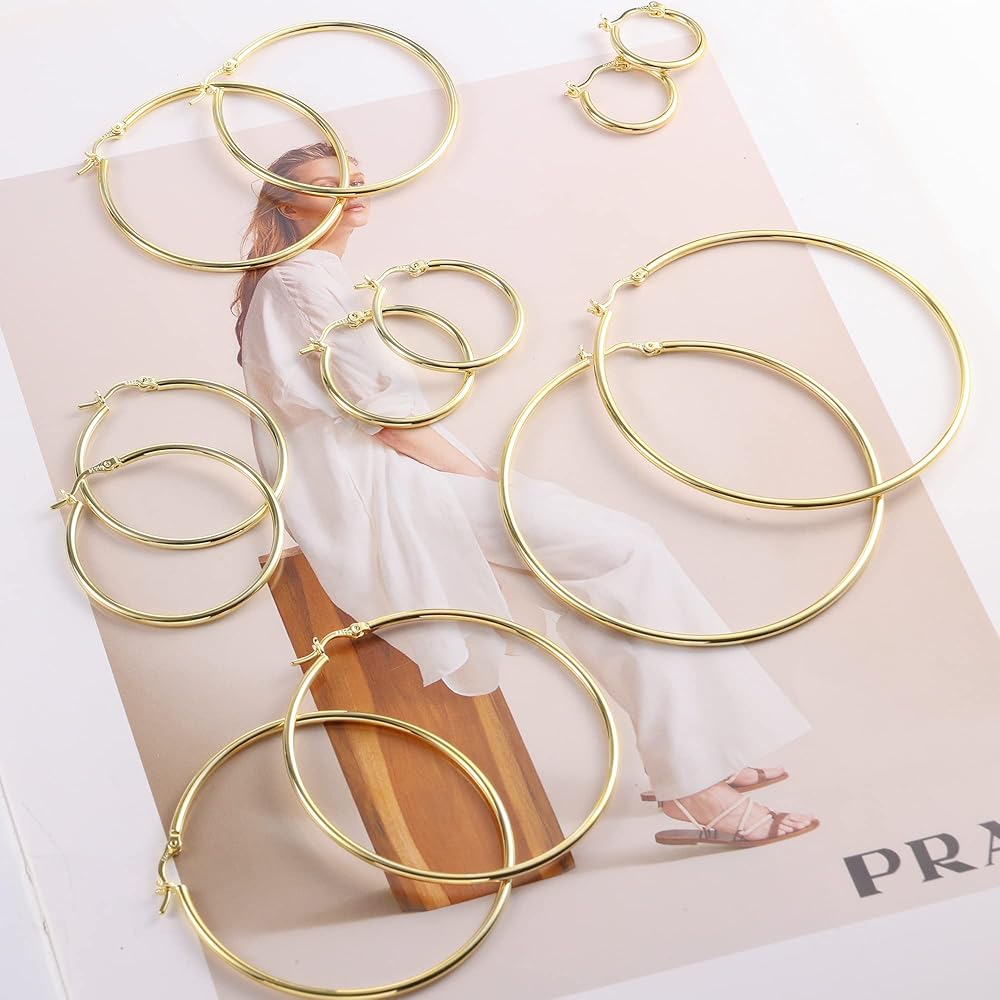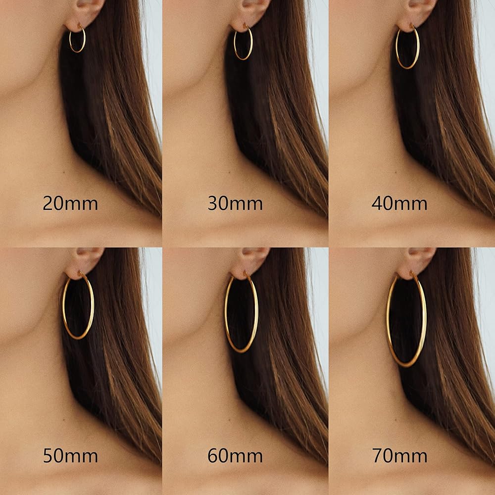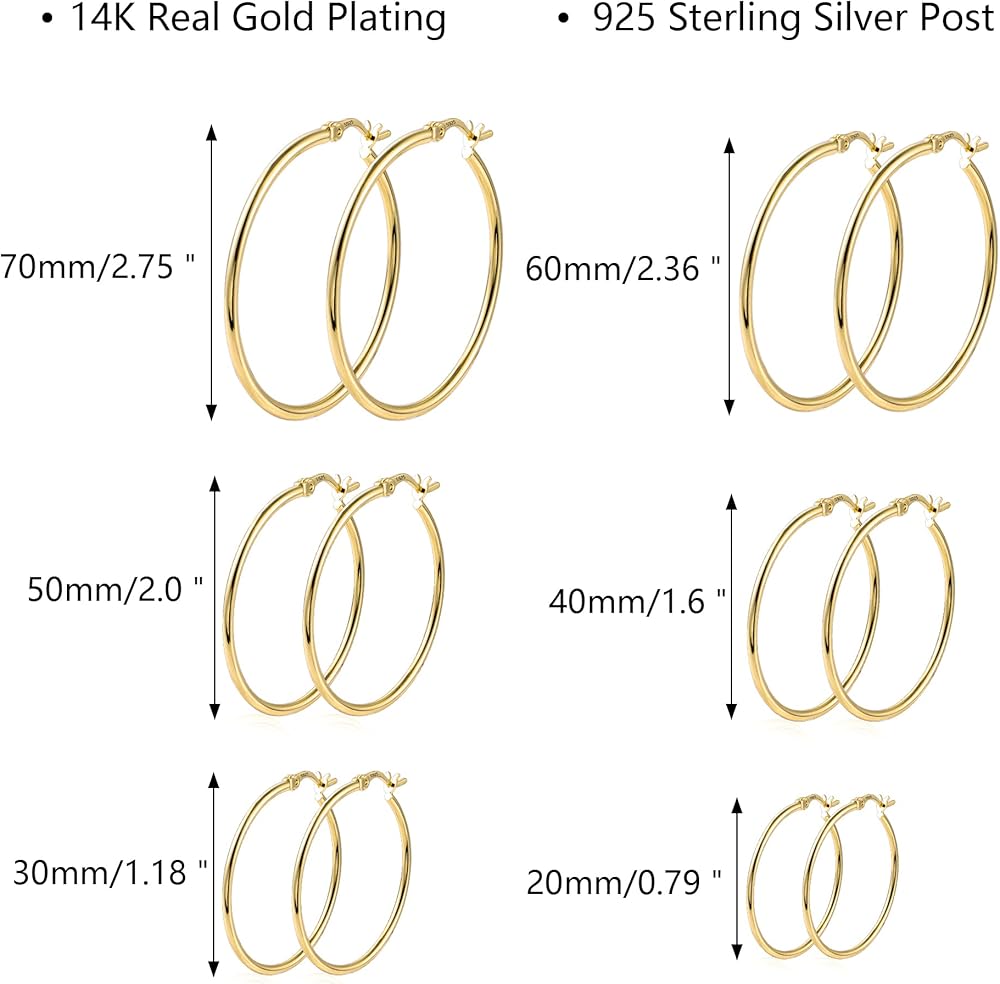 6 أزواج من الأقراط المطلية بالذهب عيار 14 قيراط والفضة الإسترلينية عيار 925 مجموعة من الأقراط الذهبية الضخمة لا تسبب الحساسية وخفيفة الوزن للنساء والفتيات (20/30/40/50/60/70 ملم)