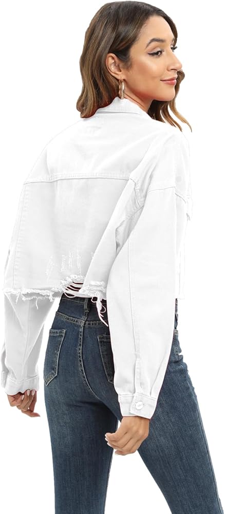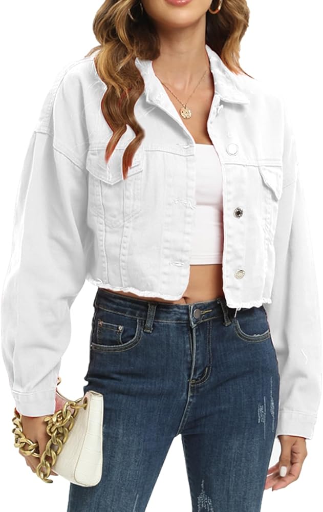 - مقاس فضفاض، سترات أنيقة ممزقة من الدنيم بأكمام طويلة، طراز الصديق، وجيبان على الصدر.
