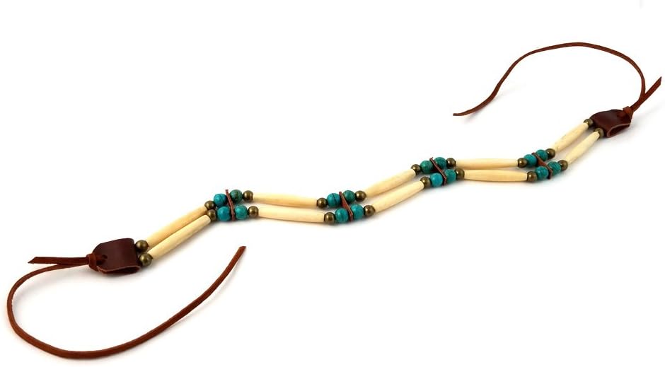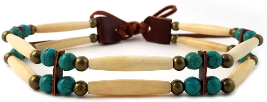 All of our jewelry is finely hand crafted in the united states using the finest materials available today. This traditional bone choker is made from authentic buffalo bone hairpipe beads, genuine leather, metal beads, and howlite turquoise beads. The necklace is 13.5 inches long (not including the leather ties). You can expect the best quality and craftsmanship in every piece we make.