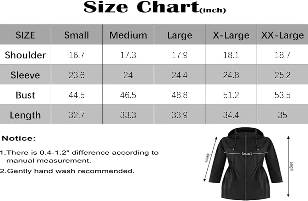 سهل التنظيف والعناية: معطف المطر مقاوم للتجاعيد وسهل التنظيف. ببساطة قم بغسله يدويًا في درجة حرارة منخفضة أو بالتنظيف الجاف للحصول على العناية والصيانة المثالية.