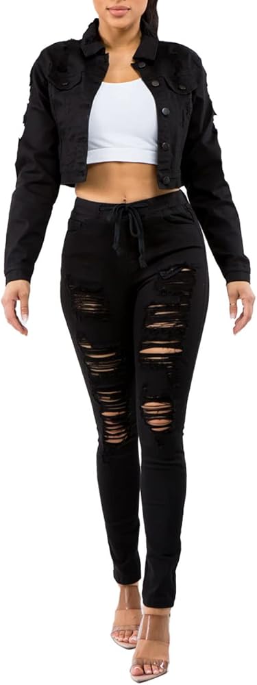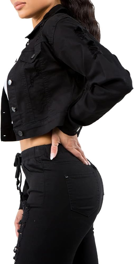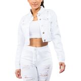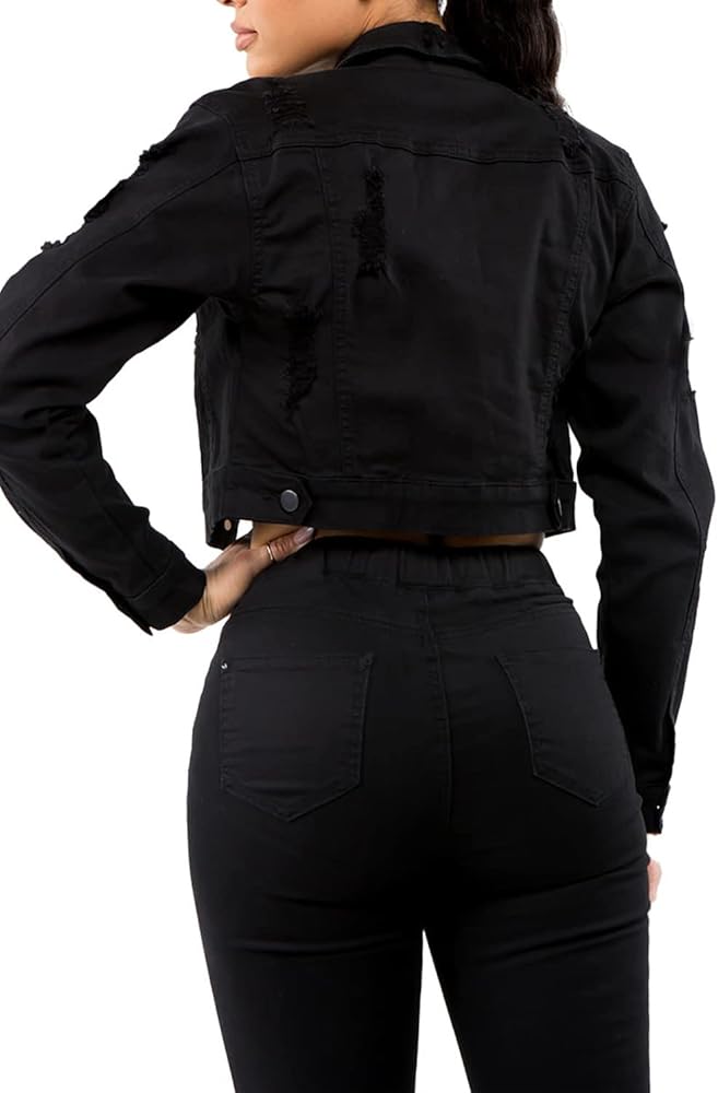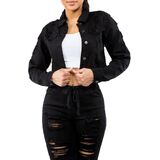 سترة نسائية كلاسيكية أساسية كاجوال مدمرة بأزرار سفلية من الدينيم