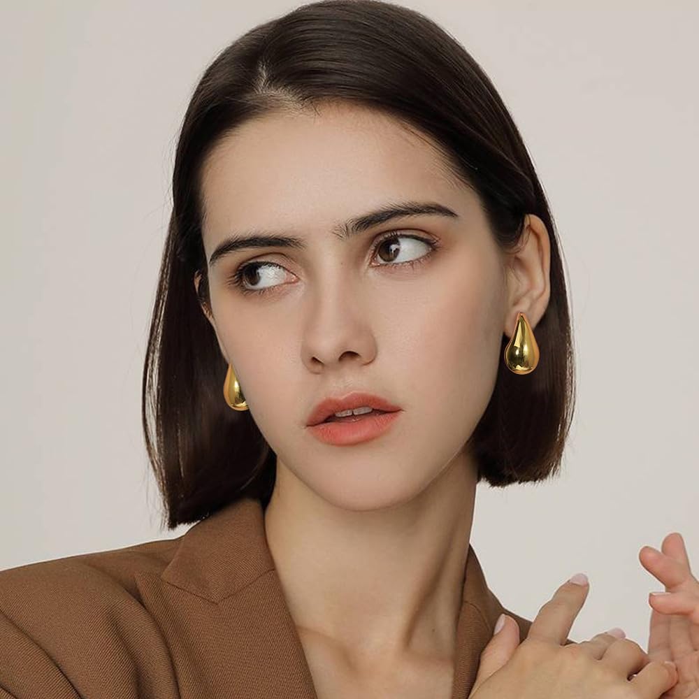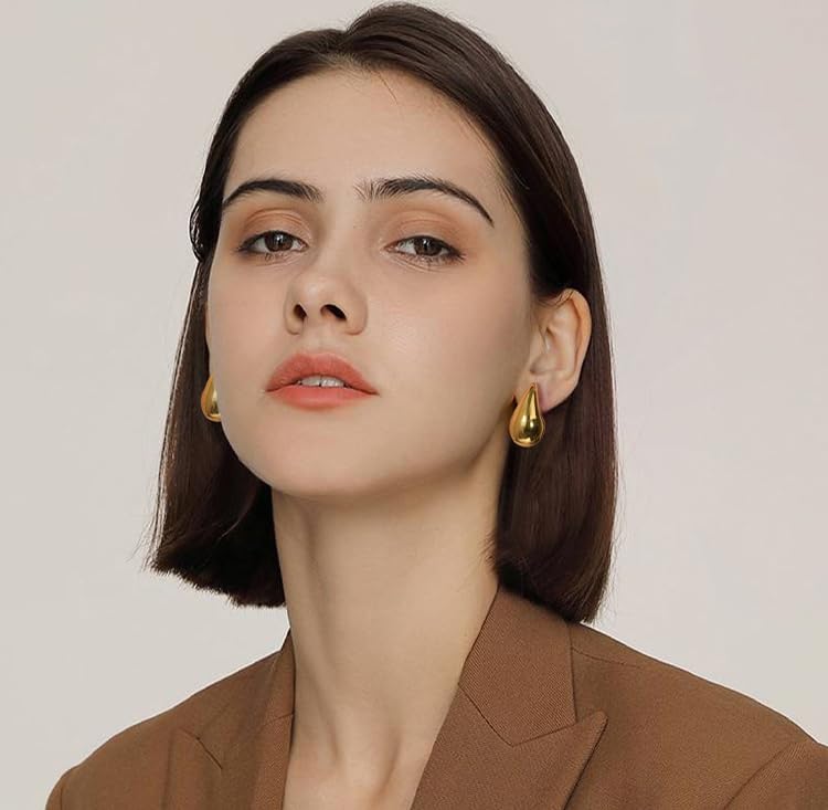 أقراط متدلية للنساء: يبلغ ارتفاع الأقراط الذهبية الكبيرة 1.69 بوصة وعرضها 0.91 بوصة، وتبدو أكبر من الأقراط العادية. ومع ذلك، فإن ارتدائها على الأذنين لا يشكل عبئًا ثقيلًا على الأذنين، ويمكنك مطابقتها كما يحلو لك