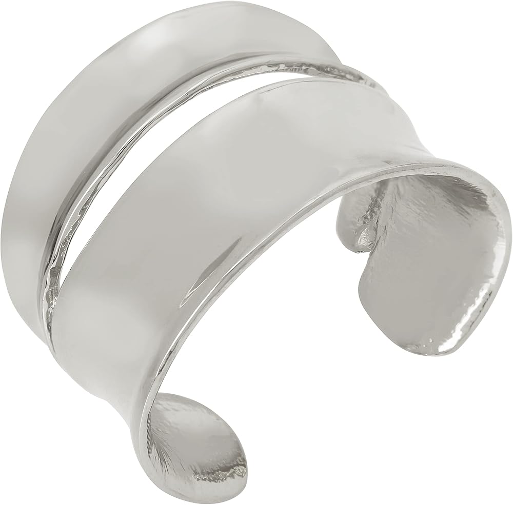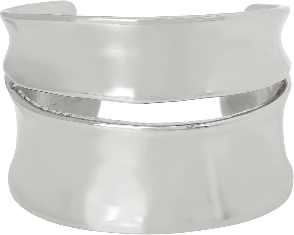 سوار روبرت لي موريس سوهو ذو الكفة العريضة المنحوتة مع الحد الأدنى من قطع بيكابو مثالي للاستخدام اليومي. يمكن أن ينزلق السوار بسهولة. مصنوعة من المعدن المصقول.