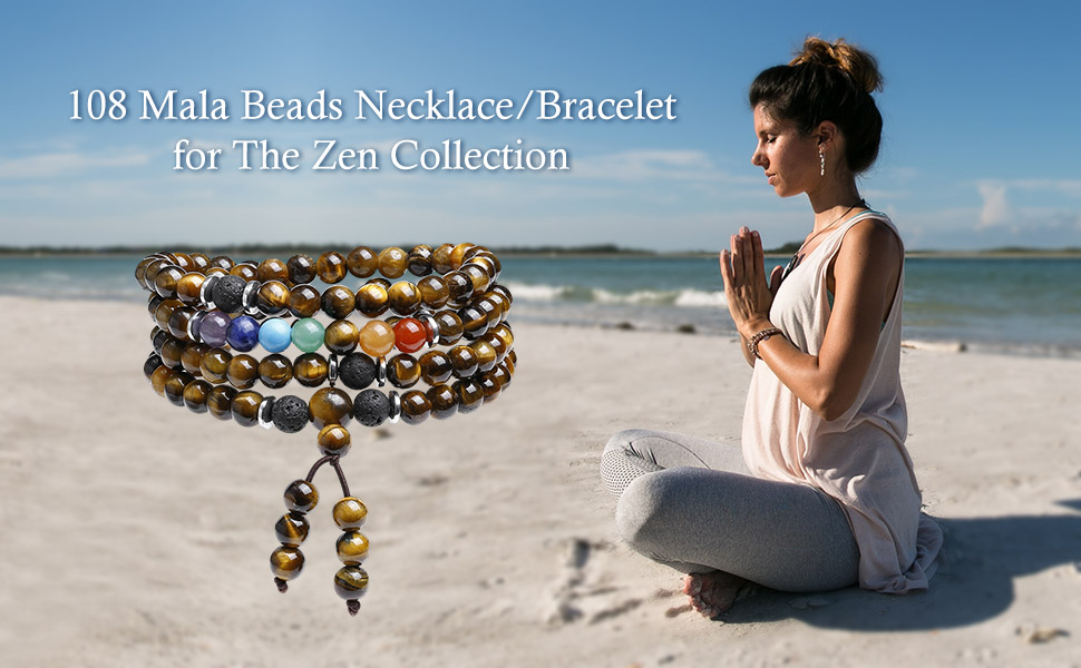 [108 خرزة صلاة Mala] تستخدم خرزة Mala للصلاة والتأمل. إنها قطعة من مجوهرات اليوغا الشهيرة وإكسسوار مهم لأولئك الذين يمارسون التأمل. إن 108 خرزة مقدسة وهامة بعدة طرق، فأهمية ومعنى خرزات مالا 108 مفتوحة للتفسير لكل من يرتديها. يُعتقد أنه قوي في جلب القوى الإيجابية لتحقيق الذات والرضا، مما يساعد على تركيز الانتباه ويبقيك مشتتًا عن التوتر والقلق.