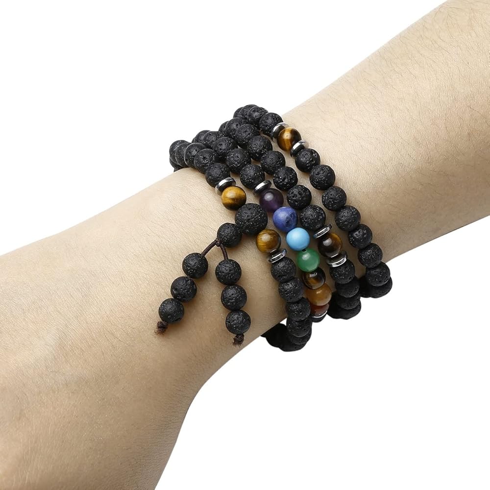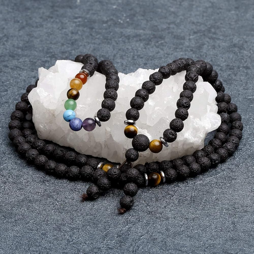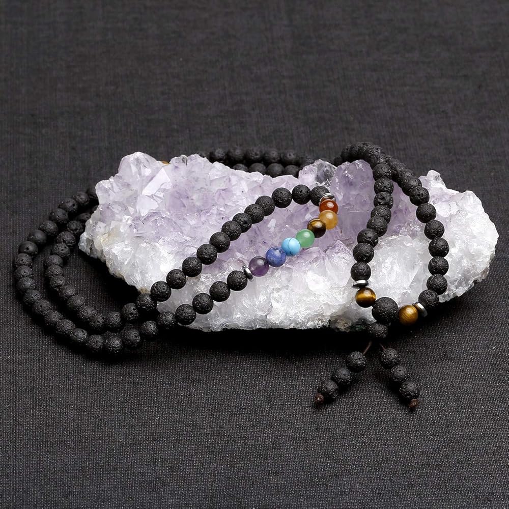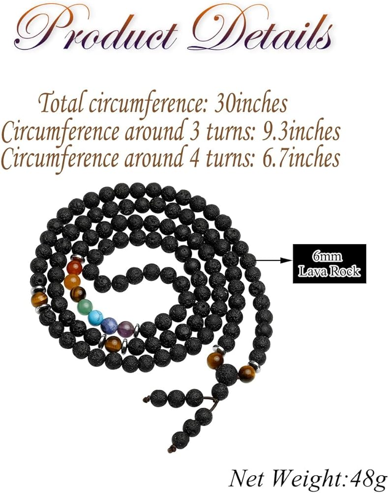 [سوار وقلادة من كريستالات الشفاء] السوار مصنوع من 108 قطعة من خرز كريستال لافا روك العلاجي مقاس 6 مم. إنه متطابق مع أحجار الريكي 7 شاكرا الكريمة وخرز عين النمر، الذي يتميز بلمعان مجوهرات ممتاز ومتانة. يمكن أن تكون قلادة أو ملفوفة حول المعصم كسوار متعدد الطبقات من خرز الأحجار الكريمة، والذي يتناسب مع أي ملابس في جميع الأوقات ويبرز سحرك.
