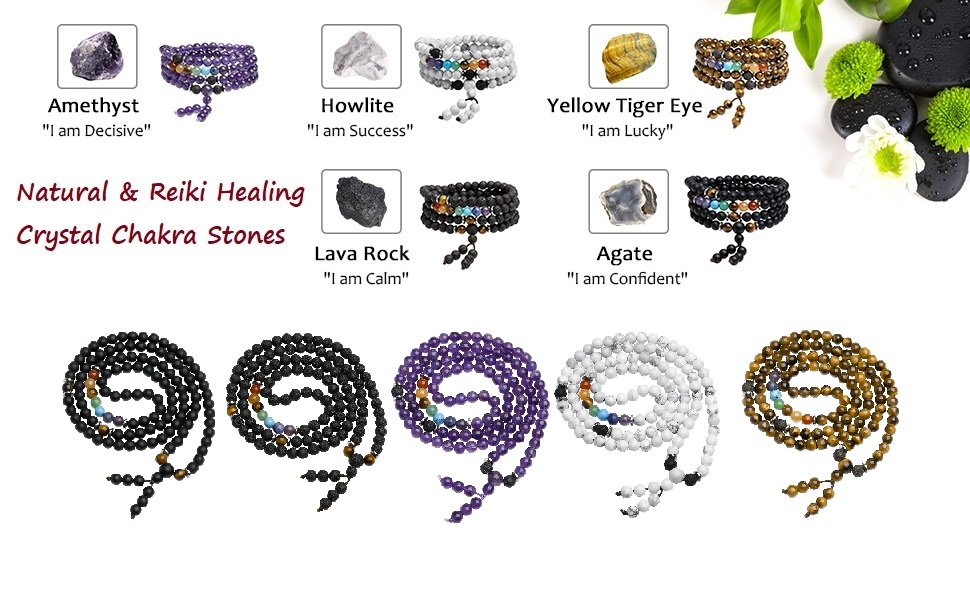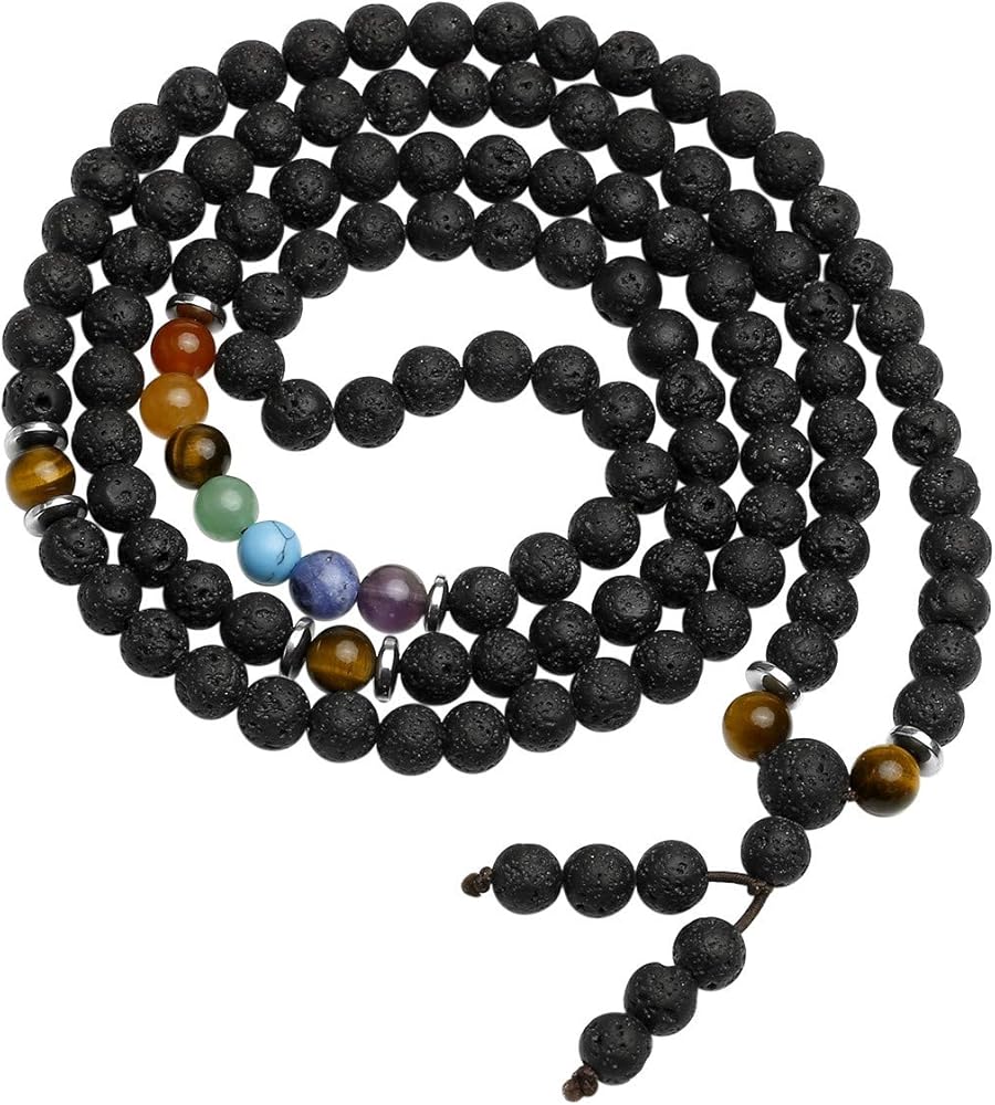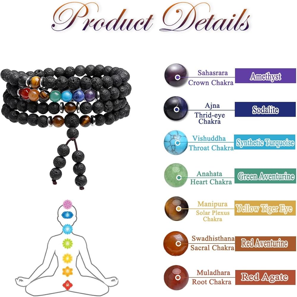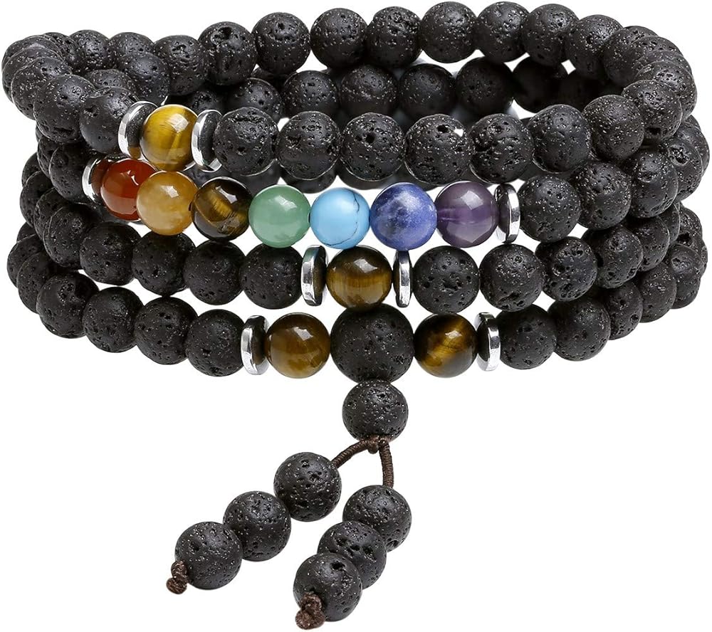 [سوار وقلادة من كريستالات الشفاء] السوار مصنوع من 108 قطعة من خرز كريستال لافا روك العلاجي مقاس 6 مم. إنه متطابق مع أحجار الريكي 7 شاكرا الكريمة وخرز عين النمر، الذي يتميز بلمعان مجوهرات ممتاز ومتانة. يمكن أن تكون قلادة أو ملفوفة حول المعصم كسوار متعدد الطبقات من خرز الأحجار الكريمة، والذي يتناسب مع أي ملابس في جميع الأوقات ويبرز سحرك.