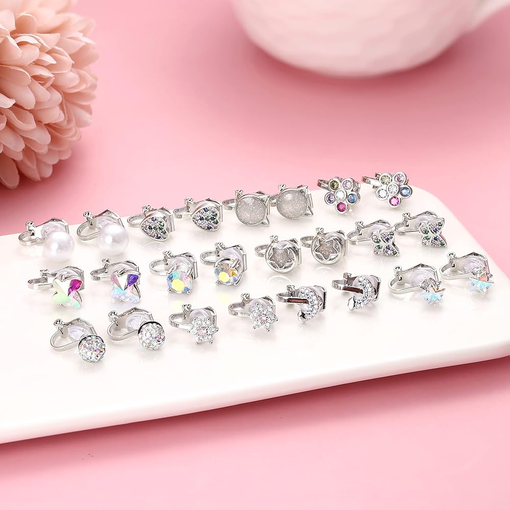 💕【أقراط بمشبك لطيف】💕 يتضمن الطلب الواحد 12 زوجًا من الأقراط اللامعة ذات المشابك للنساء، مع تصميمات رائعة وجذابة لتختار من بينها، مليئة بالفخامة. بما في ذلك أقراط بمشبك فراشة وأقراط بمشبك على شكل قلب وأقراط زركونيا مكعب لامعة وأقراط قوس قزح على شكل نجمة ملونة وما إلى ذلك. هذه الأقراط غير المثقوبة بأسعار معقولة يمكن أن تتطابق مع مجموعة متنوعة من الفساتين وتظهر مزاج الفتاة النابض بالحياة والجميل.