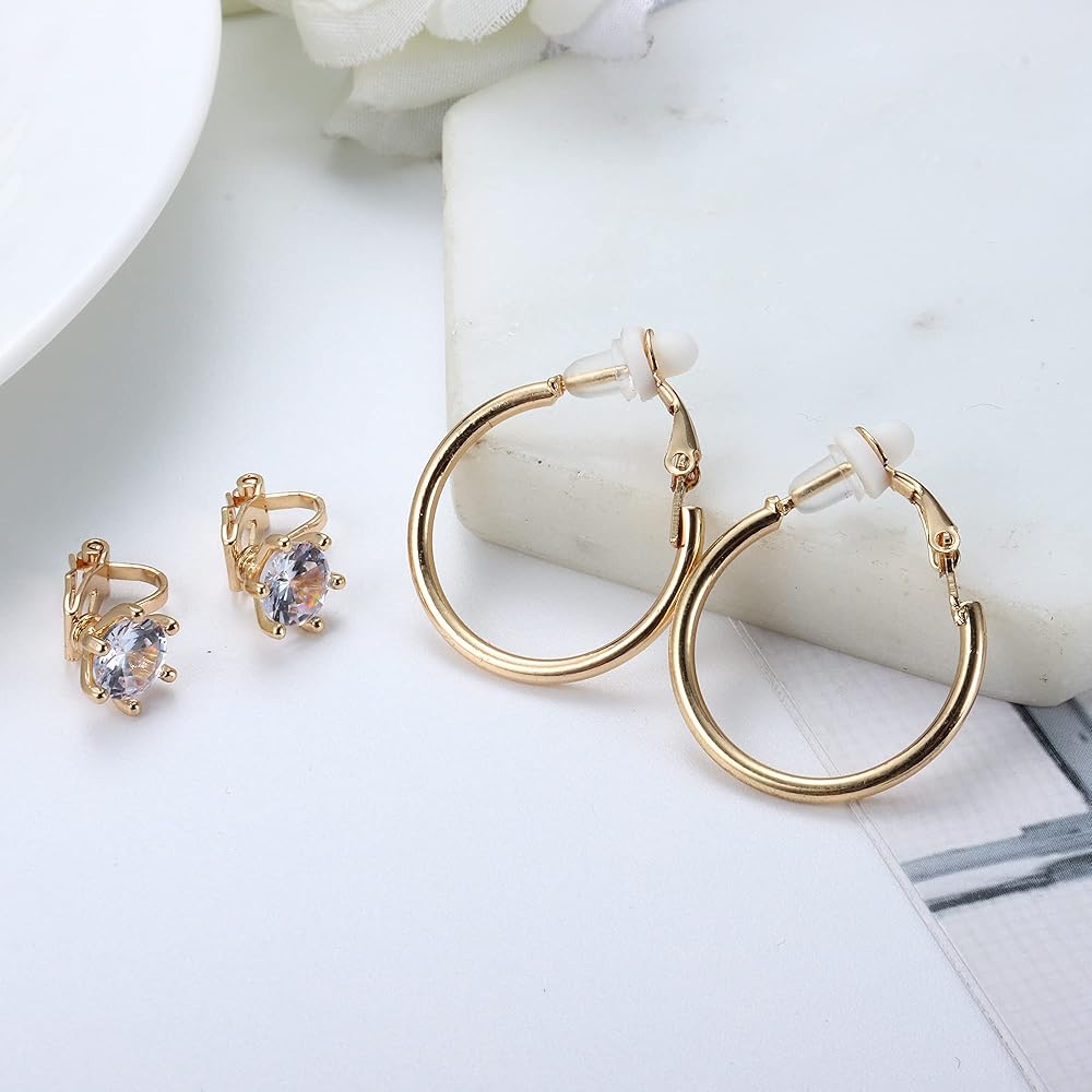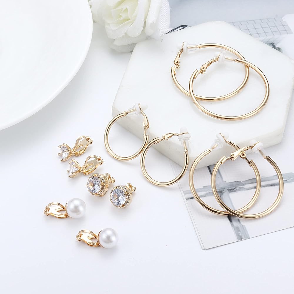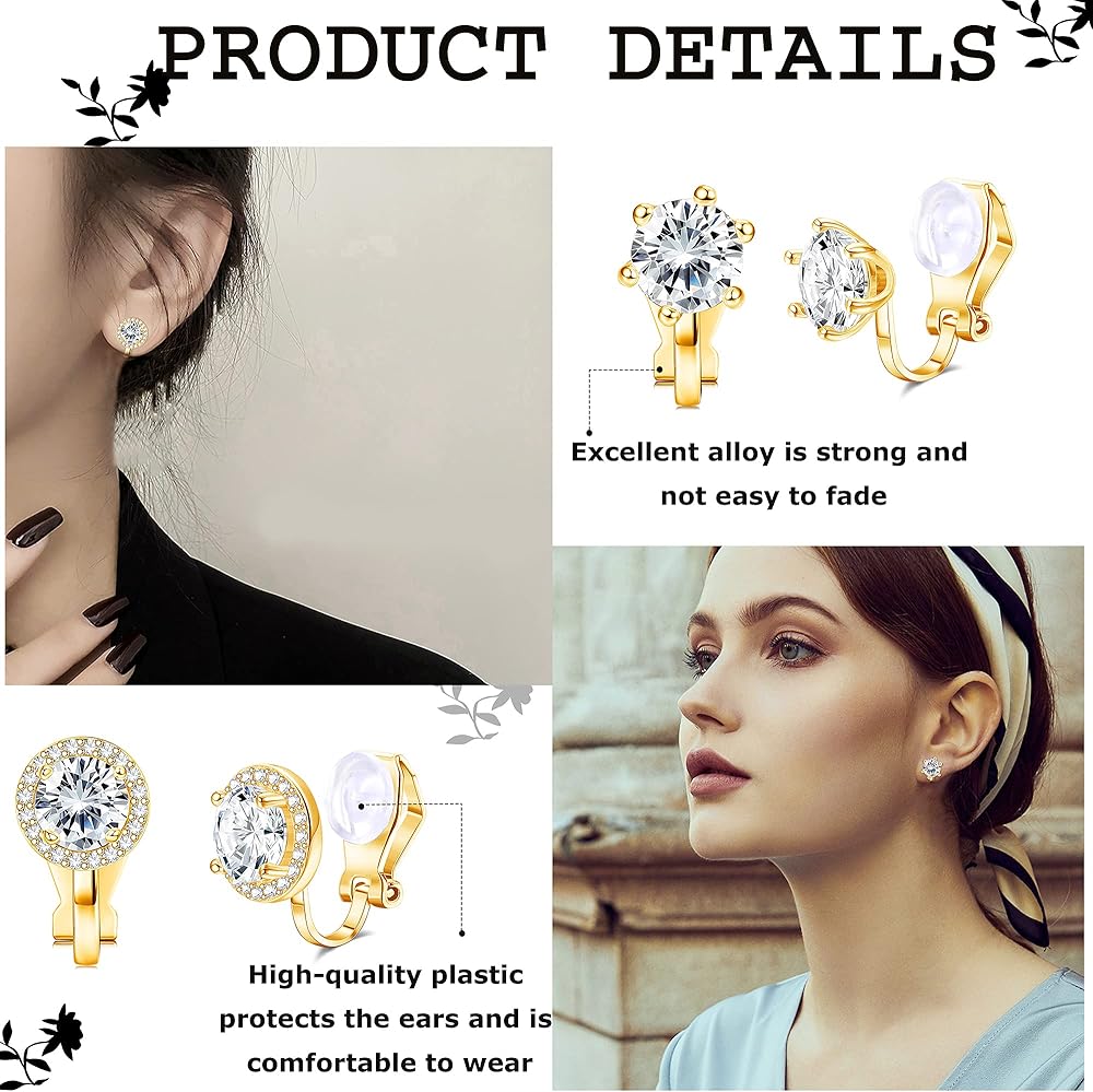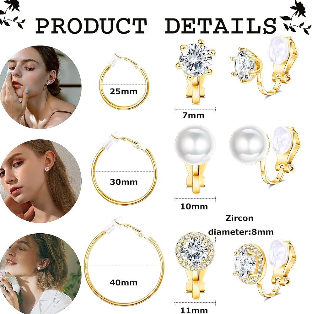 💛تصميم أنيق: مجموعة المجوهرات ذات الأقراط المشبكية مصممة خصيصًا للأشخاص الذين لا يريدون الثقب. لا تتجنب ألم الثقب فحسب، بل تجعلك أقرب إلى الجمال أيضًا. سواء كان تصميمًا كلاسيكيًا للؤلؤ الزركونيا المكعب أو أقراط دائرية عصرية للنساء، يمكنك بسهولة مطابقة الملابس لإظهار نبلك وأناقتك.
