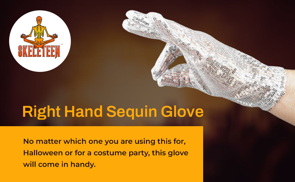 قفاز من سكيليتن مايكل جاكسون سيكوين - إكسسوار زي قفاز أبيض لليد اليمنى - قطعة واحدة
