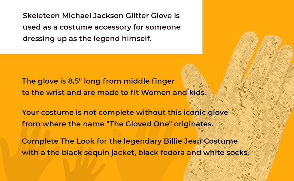 • قفاز مايكل جاكسون جليتر من سكيليتين يستخدم كأكسسوار زي لشخص يرتديه كأسطورة نفسه.