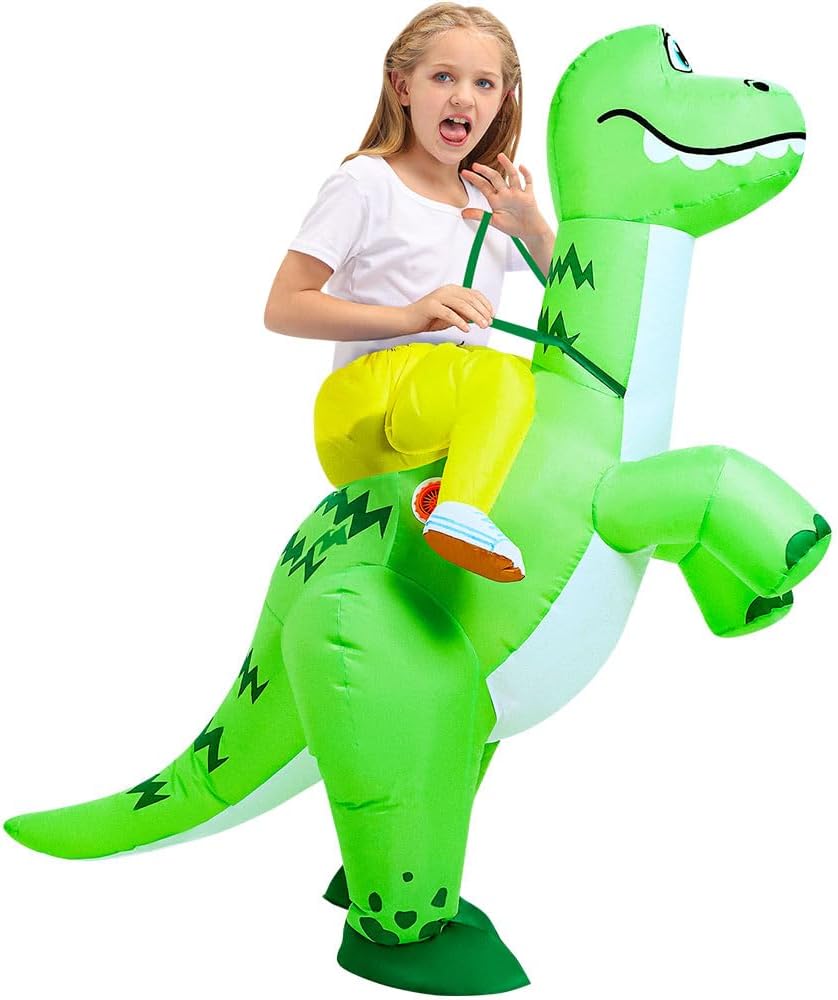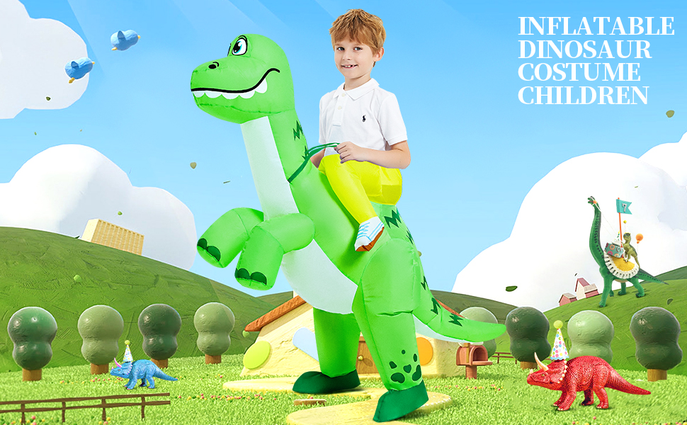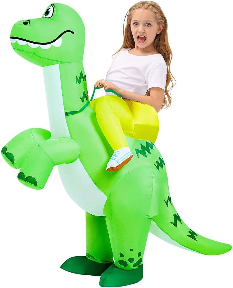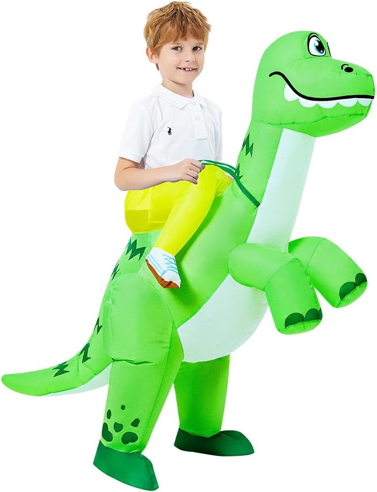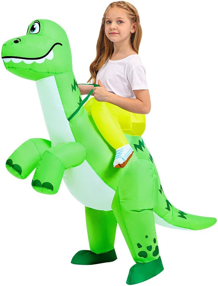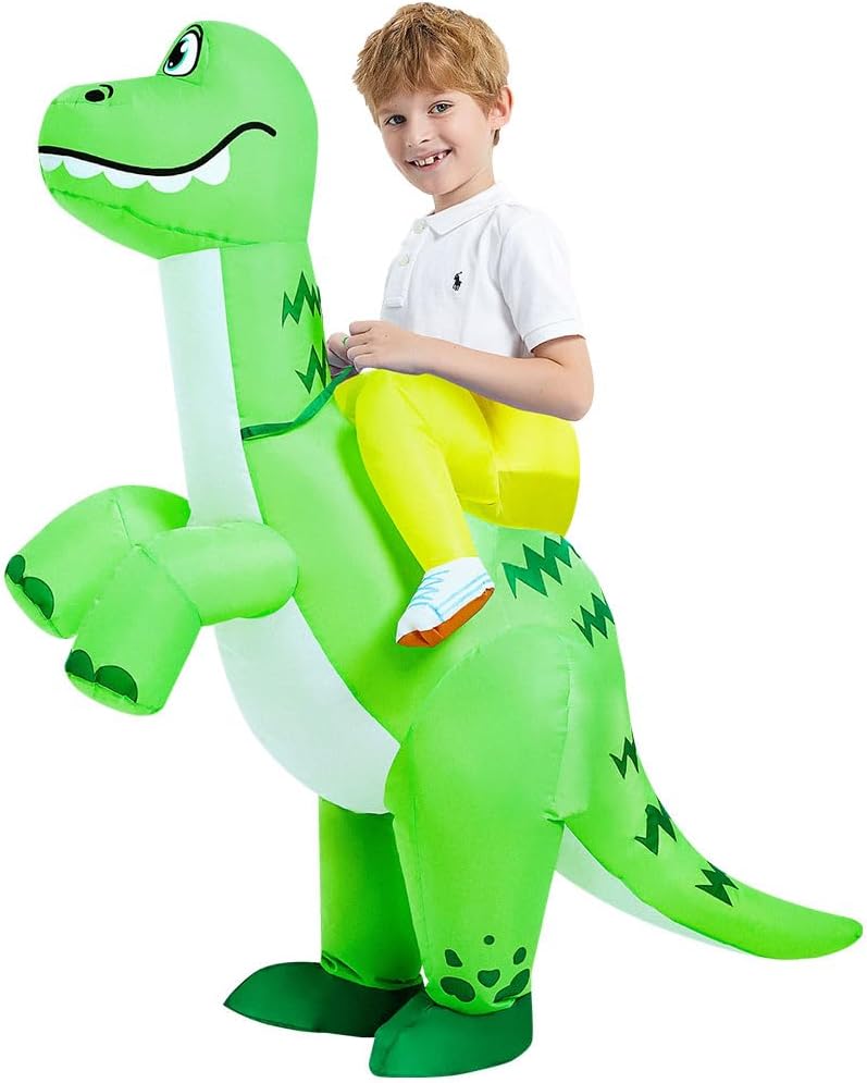 🎃【ركوب ديناصور سعيد وممتع للأطفال】: ارتدي زي الديناصورات القابل للنفخ للأطفال لاحتفالات الهالوين! يبدو الأمر كما لو كنت تركب الديناصور ريكس الذي تخشاه جميع الديناصورات، ملك الزواحف. عش رغبتك في ركوب ديناصور واجعل مستوى الفرح في عيد الهالوين يتزايد بشكل كبير.