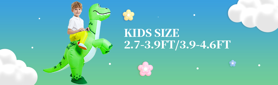 🎃【مقاس زي الديناصور المنفوخ للأطفال】: زي فيلوسيرابتور يناسب الأولاد والبنات من عمر 4-6 سنوات/7-10 سنوات (2.6-3.9أقدام/3.10-4.6أقدام). رباط حزام الخصر قابل للتعديل، ويشد لمنع الهواء من الهروب.